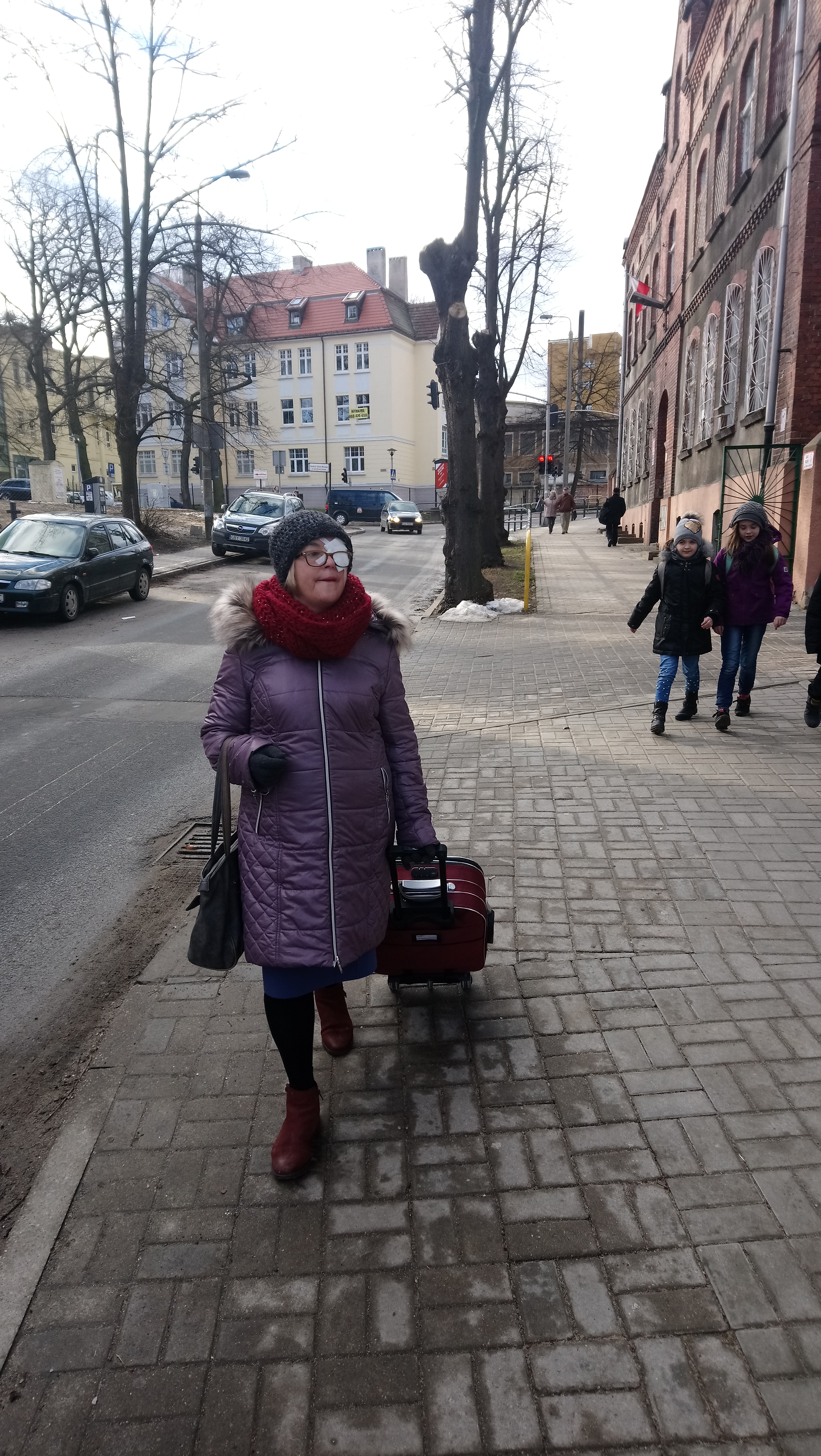 w samym pociągu pomógł jej z tą walizką przy wysiadaniu jakiś chłopak, do autobusu- jak mówiła, poradziła sobie sama, bo było nisko i nie musiała bardzo wysoko tego bagażu podnosić. Natomiast u nas w klatce [a mieszka na 3 piętrze bez windy] tak się złożyło, że „jakimś szczęśliwym trafem” wychodził właśnie z domu młody sąsiad mieszkający na parterze (wcześniej pytał się nawet kiedyś [wraz ze swoją żoną] mojej mamy, czy nie zechciałaby czasem „dorobić” przy pilnowaniu ich małej córeczki) i jak ją ujrzał z tym zaklejonym okiem, to od razu wyraził chęć pomocy i wniósł jej tą walizkę na samą górę. MAŁA RZECZ, A CIESZY 🙂