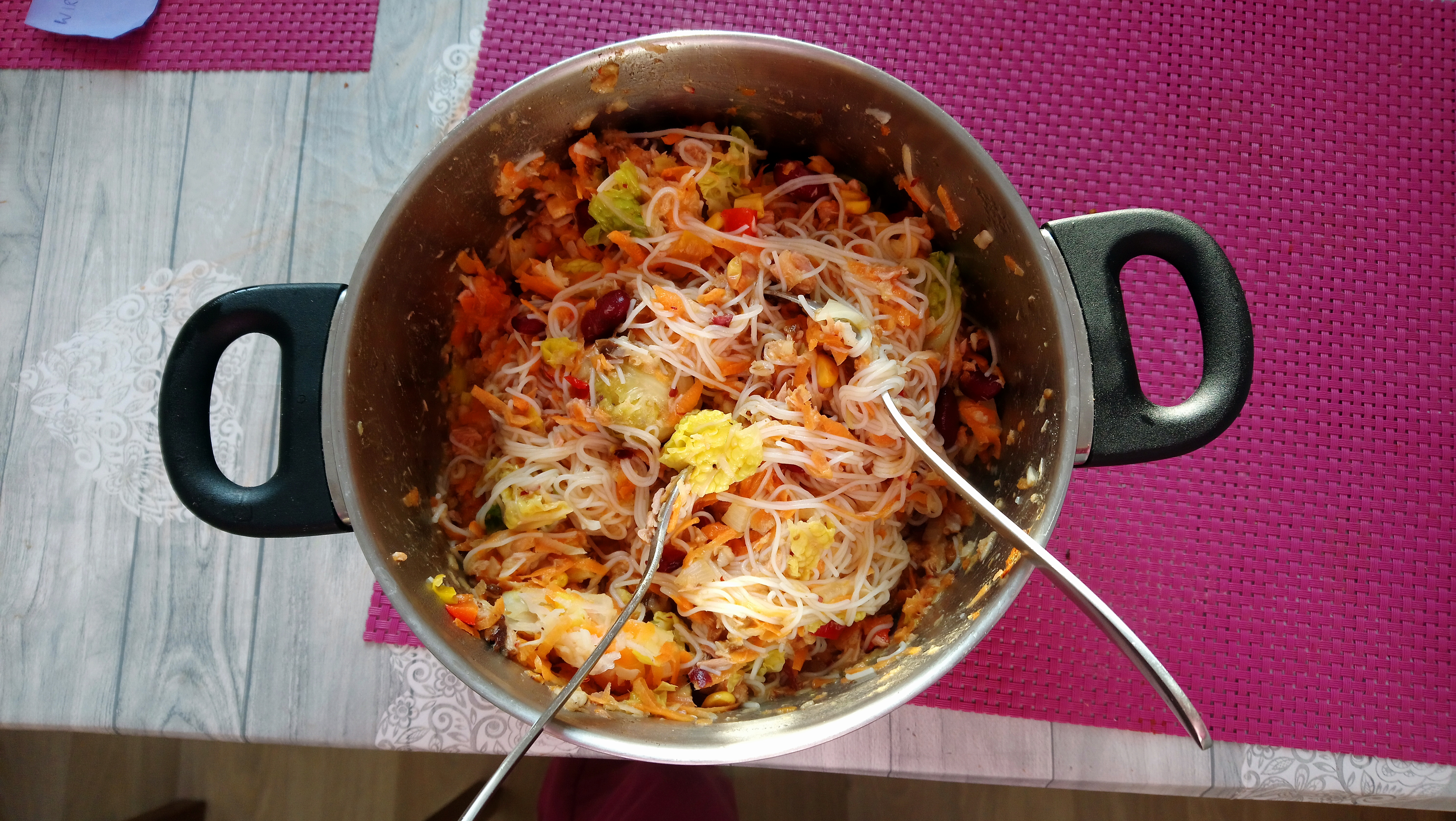 Zatem zaczynamy: Wróciłam szczęśliwa, bo już opłaciłam całą sesję numerologii. A ponieważ dzień wcześniej pomysłowa Monika zaszła do Marketu Carrefour i ujrzałam tam produkty z Chińskiego Nowego Roku, typu makarony i różne sosy, w tym makaron ryżowy, który oczywiście zakupiłam.