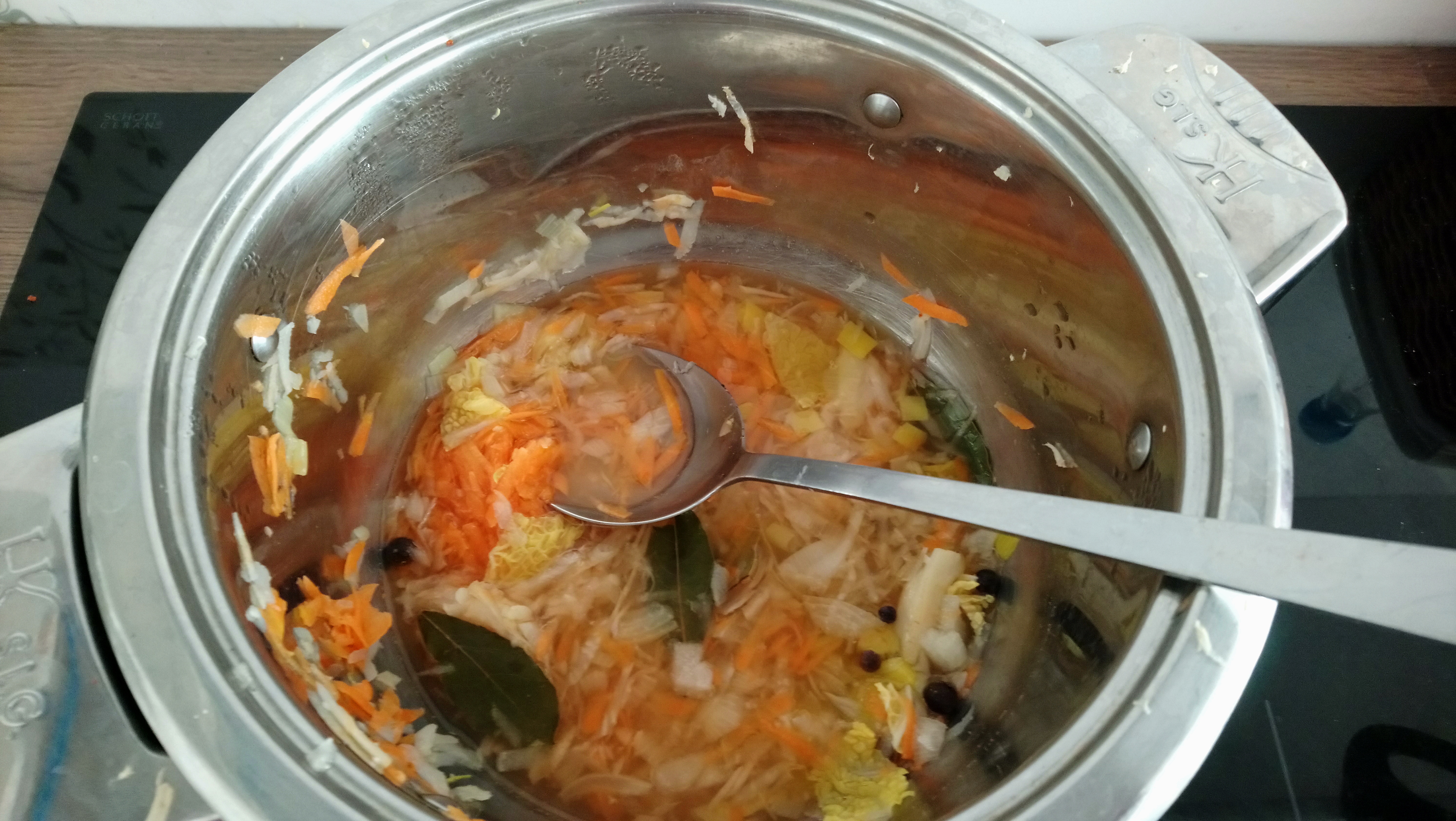 - 1 duża marchewka [tu się ucieszyłam, bo miałam nawet więcej niż jedną + pietruszkę, seler, por, no i jeszcze po kawałku cebuli i kapusty wloskiej :P]