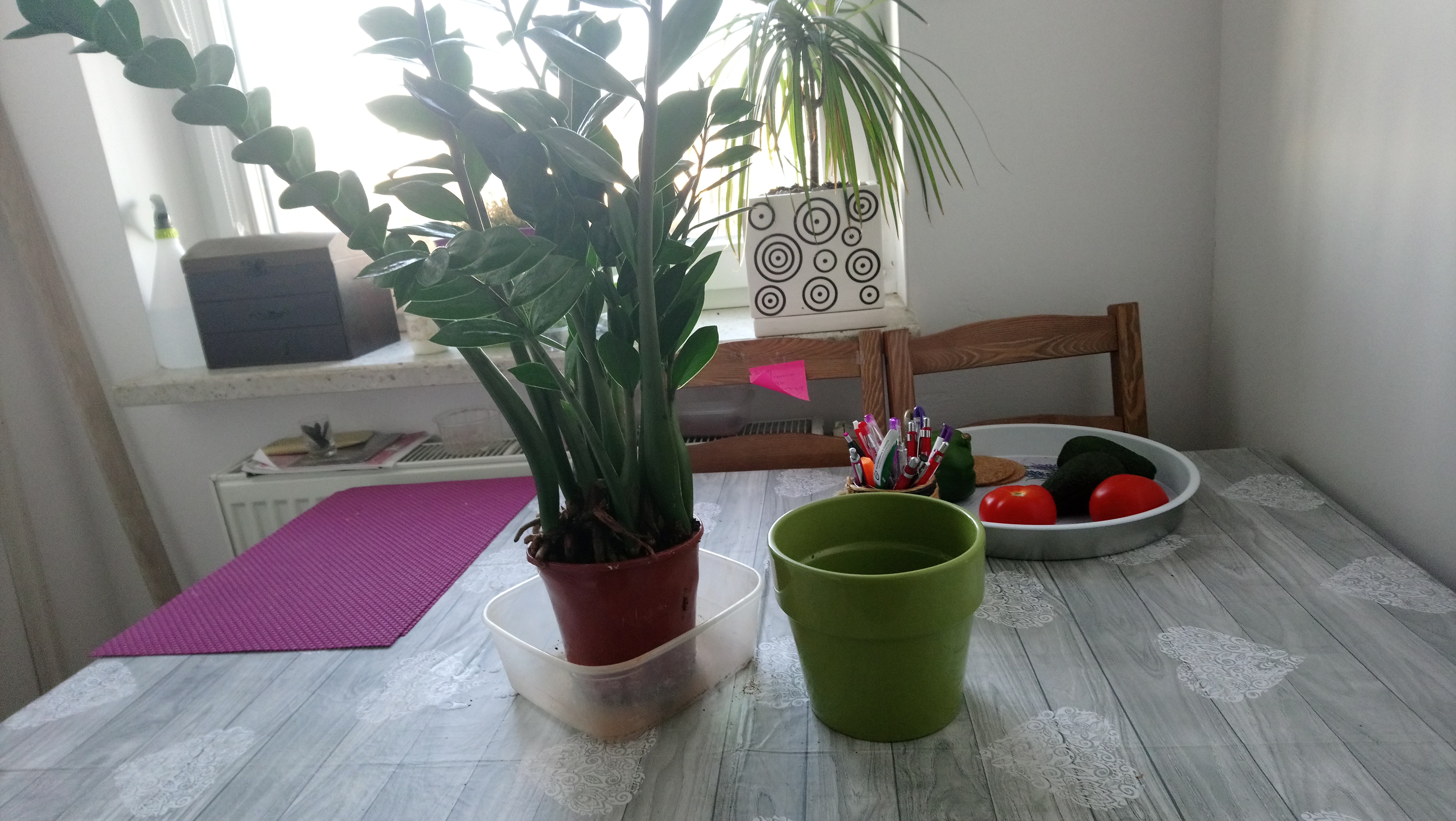 - podlać kwiatka [robię mu taką „kąpiel” co tydzień- „zraszam” go zaledwie i w tej odrobinie wody zostawiam na nockę, by sobie „popijał” delikatnie, tyle ile potrzebuje, hehe- choć rano zawsze to pudełeczko jest suche/puste
