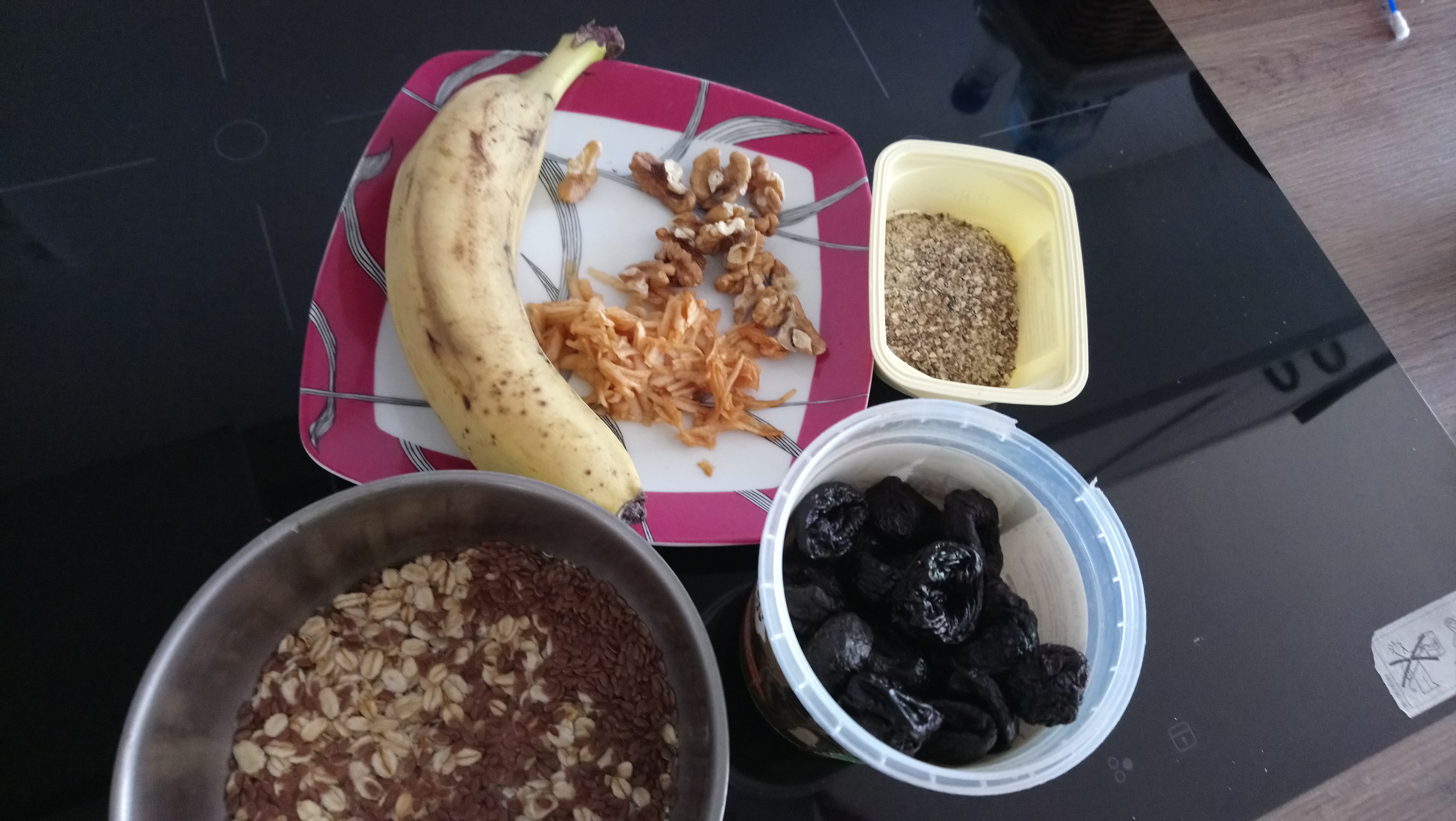 - jabłko [ścieram na tarce, ale można po prostu wkroić cząsteczki]