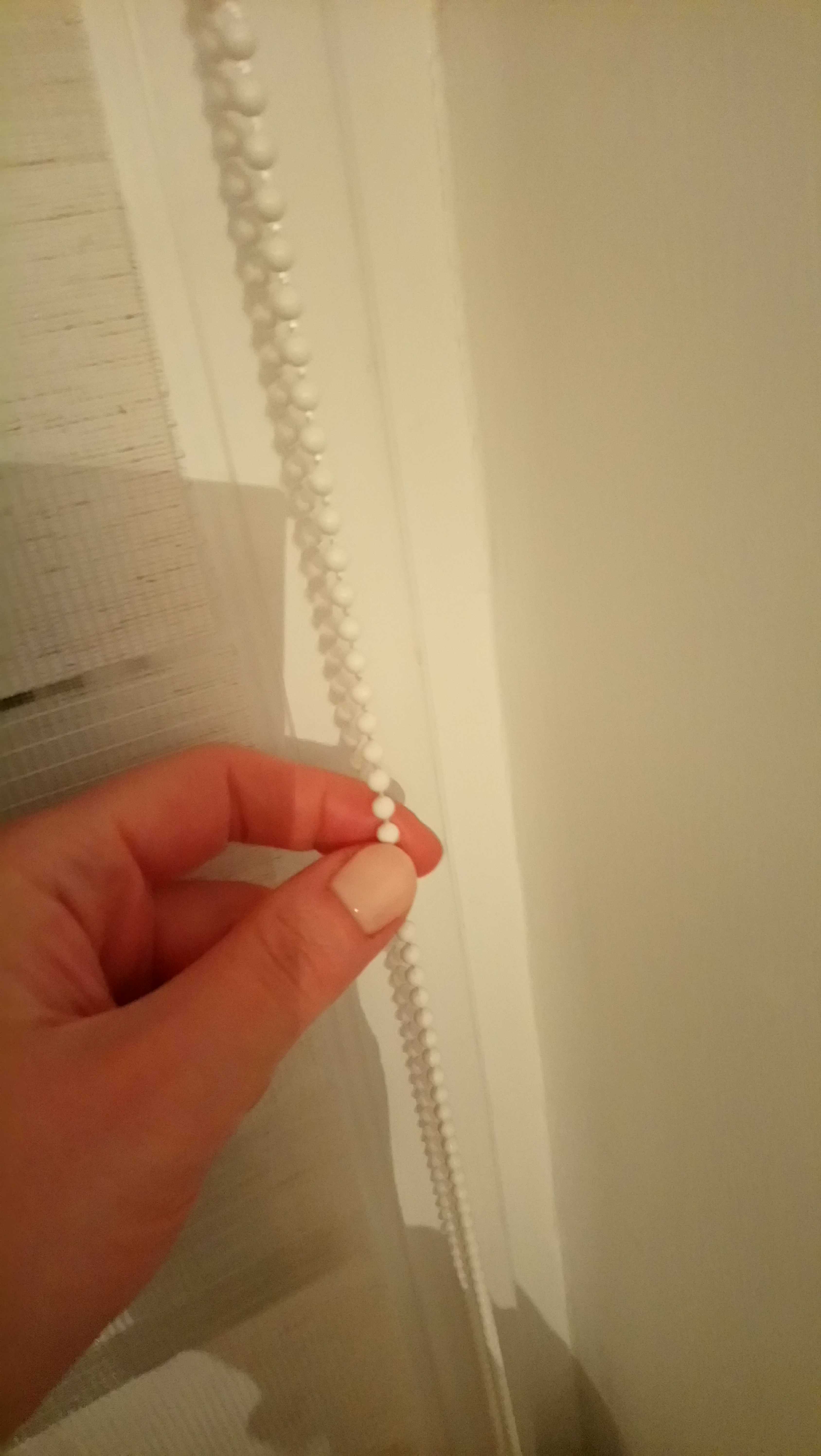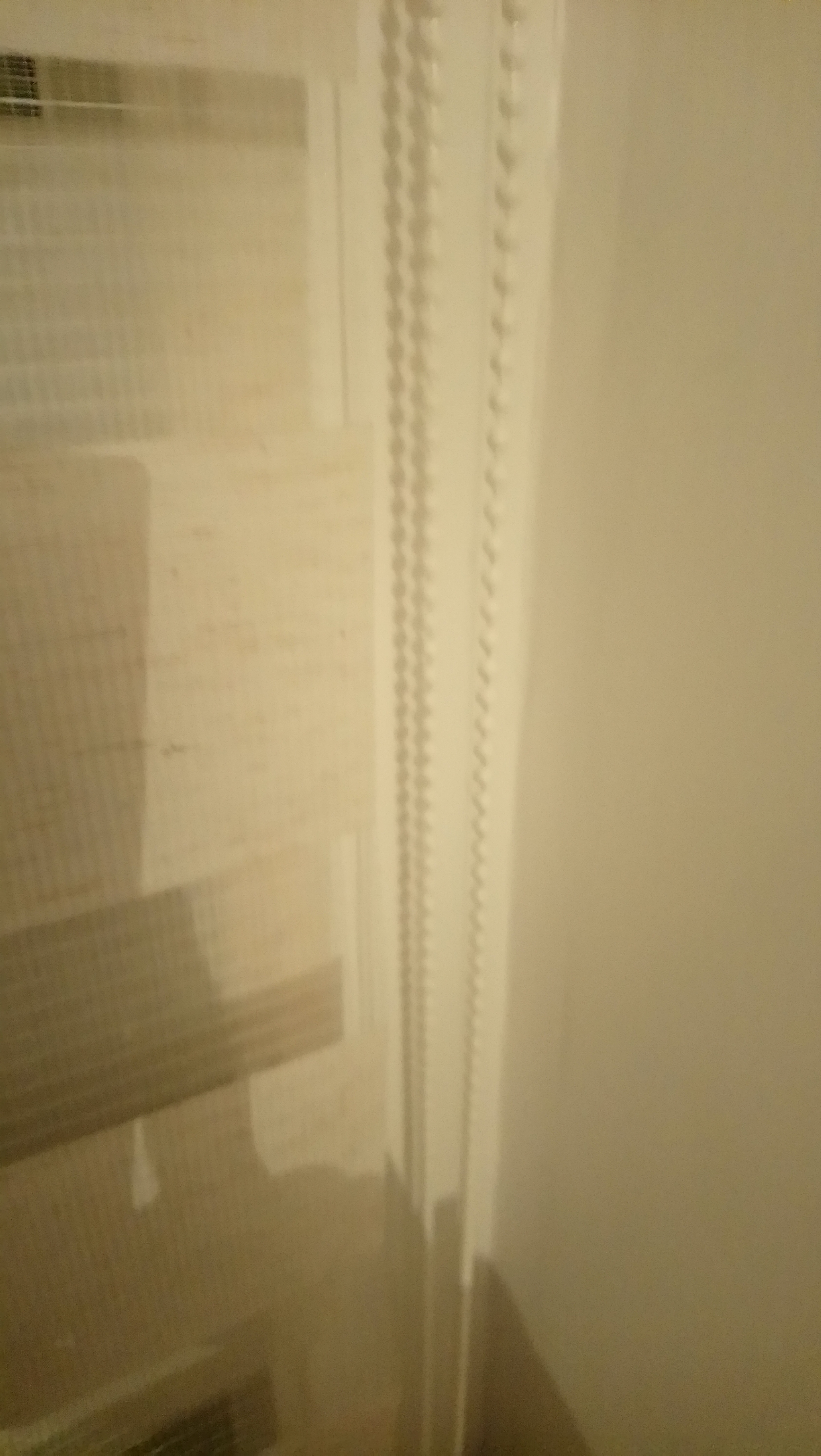 Chodzi teraz o to, by ten „łańcuszek” był po stronie zewnętrznej, czyli od tych drzwi balkonowych, bym nie musiała sięgać aż tak daleko, by odsłonić/ zasłonić okno i tak Andrzej powiedział, że za pomocą tej taśmy możemy to uzyskać 😉.