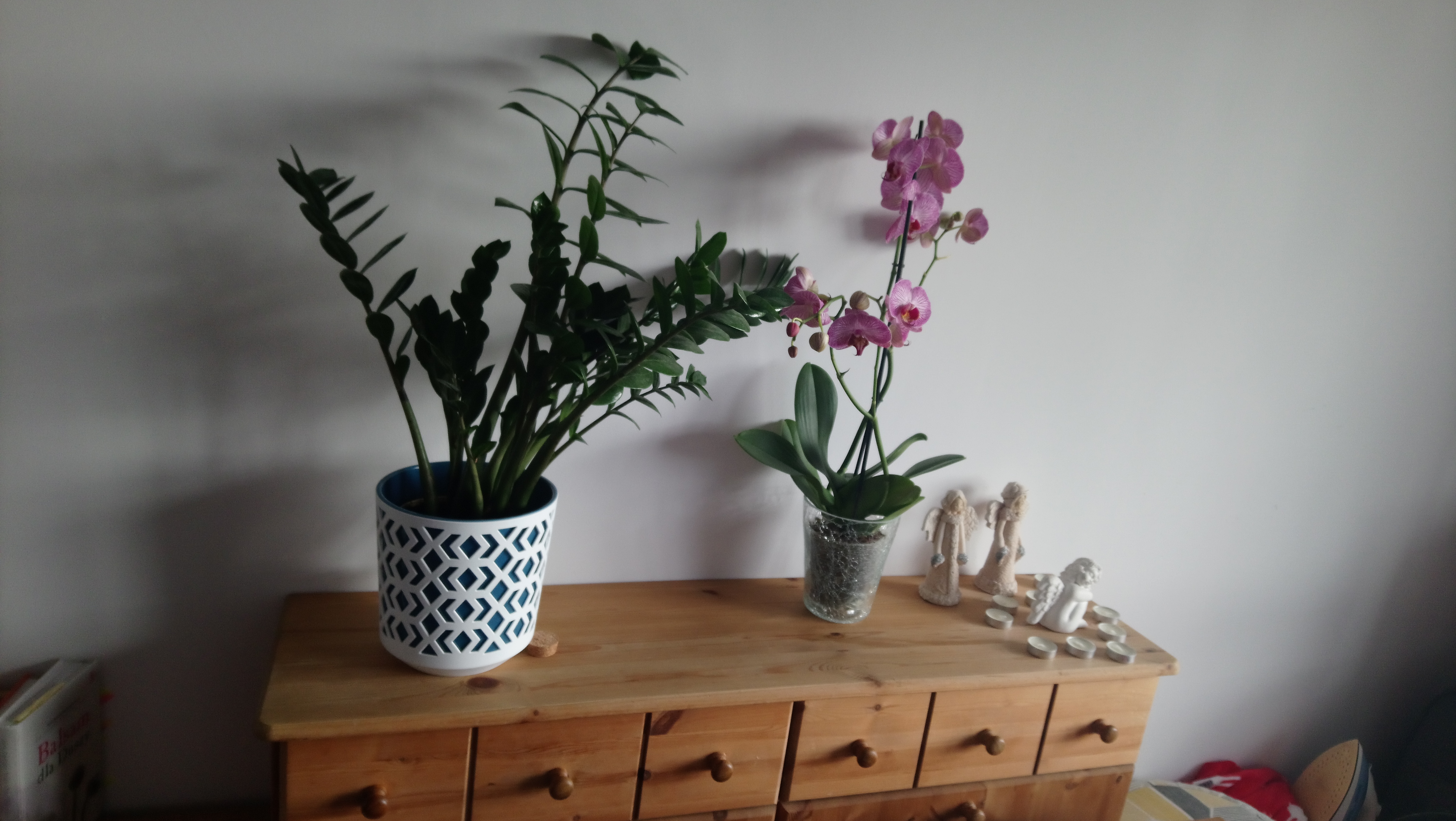- I po tym, jak zjadłam rosół zabrałam się w końcu za przesadzenie mojego pięknego kwiatka [u mojej babci widziałam 2 takie same, już naprawdę mega duże i wyglądały naprawdę cudnie]. Na fotce poniżej ten, o którym piszę [przesadzony] stoi po lewej [patrząc z waszej str.]