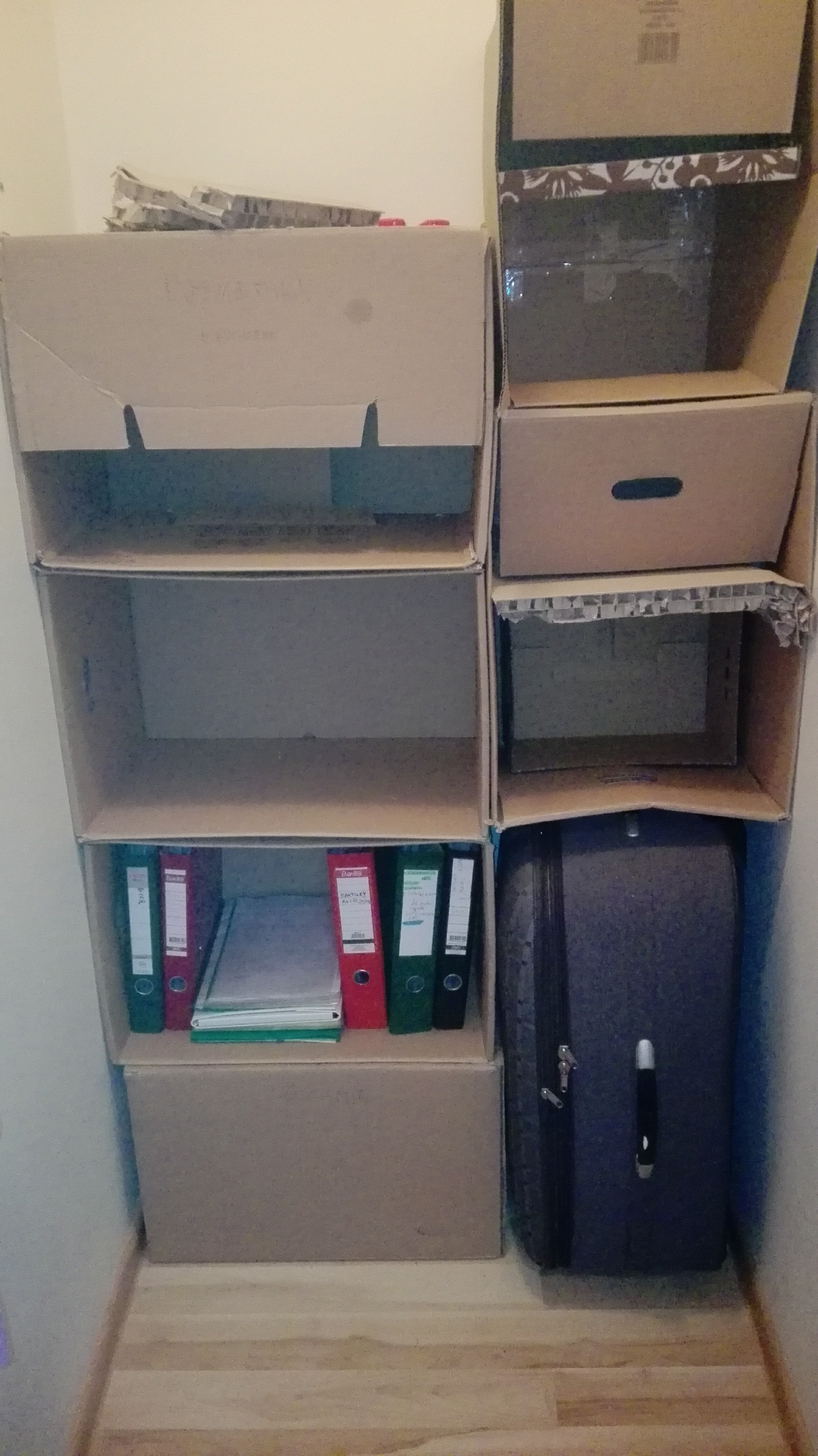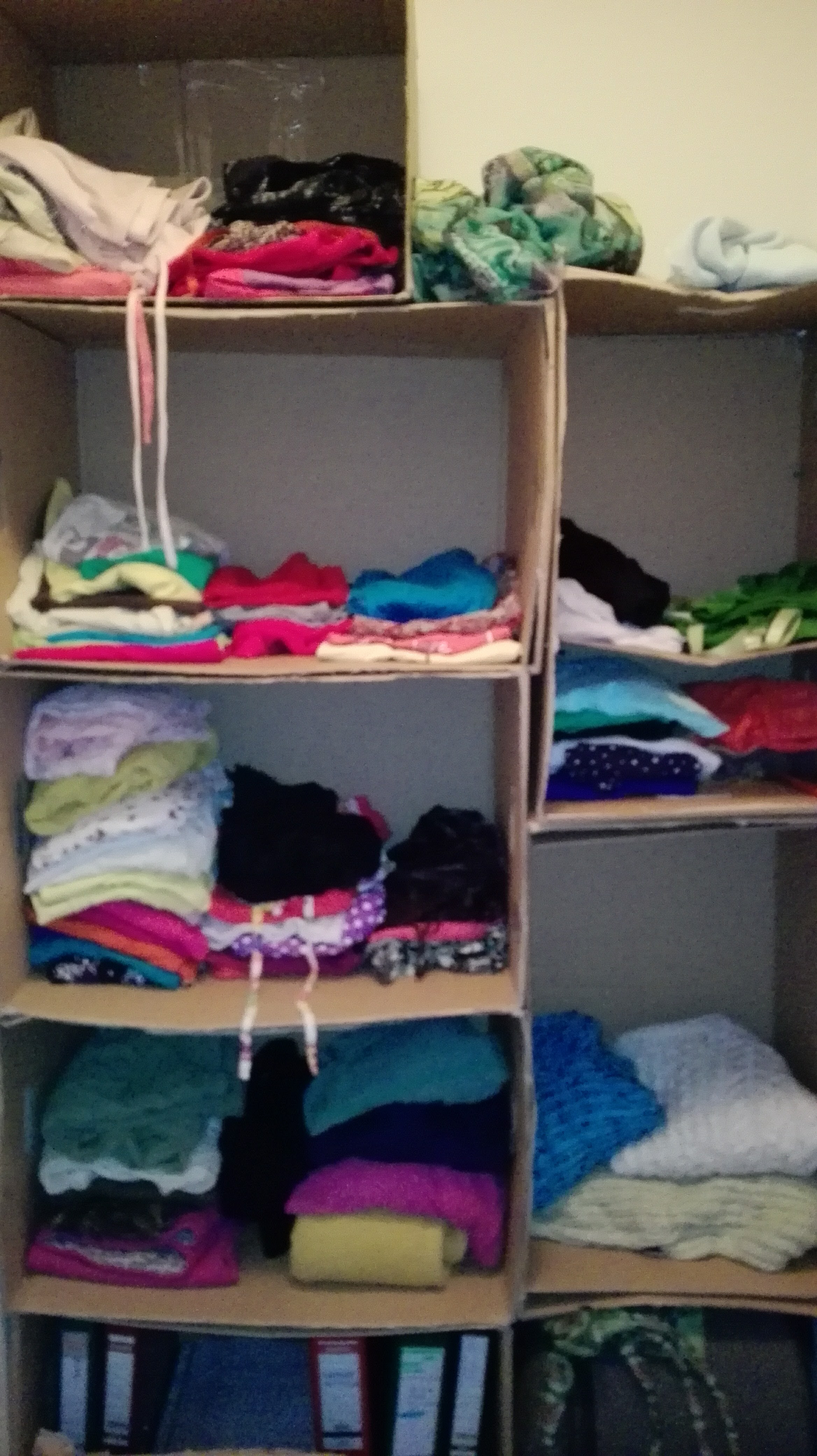 poniżej kartony, z których kreatywna ona, uczyniła sobie szafki na ubrania i dokumenty 💪