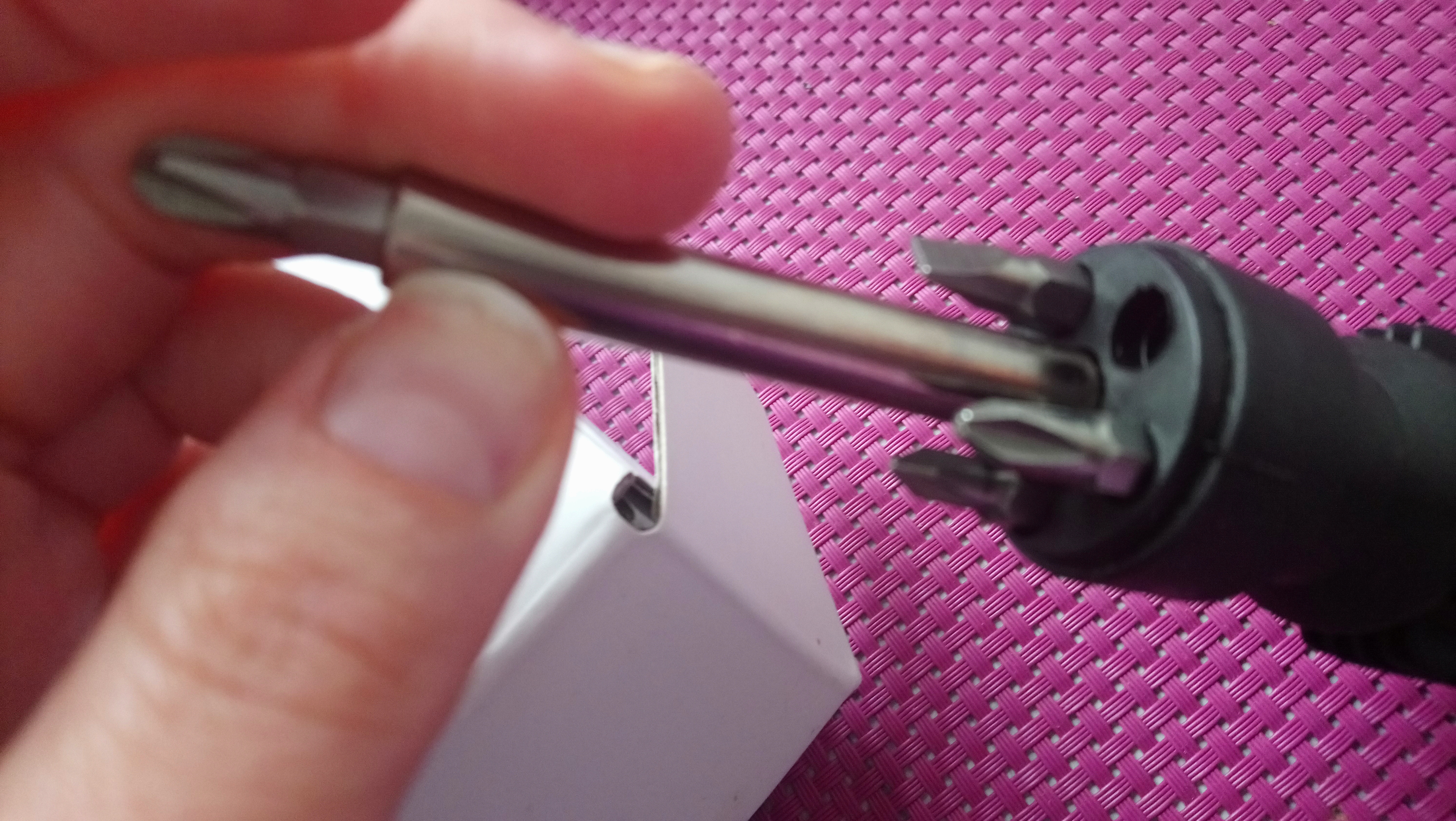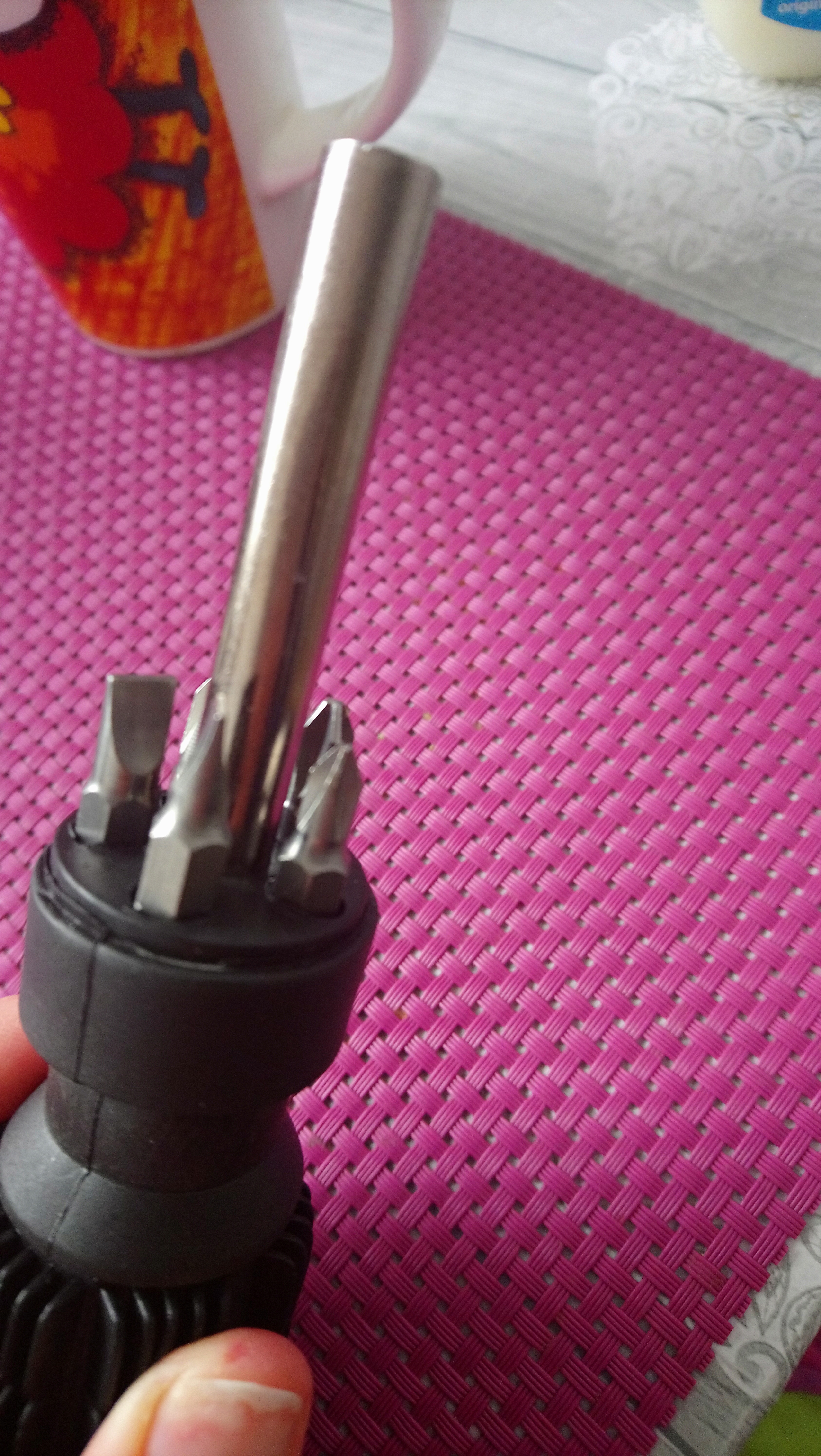 Po raz kolejny uświadomił jej to poniekąd Ajahn Brahm wczoraj [15.05.19], gdy włączyła sobie jego wykład choćby o depresji…Ajahn Brahm [http://sasana.pl/depresja] – cały jego wykład jest oczywiście szczególny, lecz przysłuchajcie się proszę zwłaszcza temu, co on mówi ok.13:40. I w tym momencie dokładnie jej właśnie UŚWIADOMIŁ, że TO ONA JEST „ŚLEPA” 😋 Gdyż dostrzega nieustannie TYLKO jakieś swoje błędy [często, podkreślam! nie do końca od niej zależne, ponieważ są spowodowane jeszcze konsekwencjami tego wypadku…], a kompletnie pomija to, co już udało jej się dokonać. [choćby dziś po wypraniu i wywieszeniu prania, jeszcze przed umyciem się, spojrzała na tą klamkę w łazience, którą należałoby dokręcić i tak chwilkę sobie pomyślała nad tym, że przecież ma w domu śrubokręty (i nie zawahała się ich użyć, hehe 😜) jeden z nich jest po prostu genialny, gdyż ma 5 różnych końcówek! Jak widać na fotce poniżej. Znów dzielna ona sama się w niego zaopatrzyła,😊, już nie pamięta oczywiście, gdzie -biedra, albo pepko zapewne, bo je ma teraz akurat najbliżej 🤣]