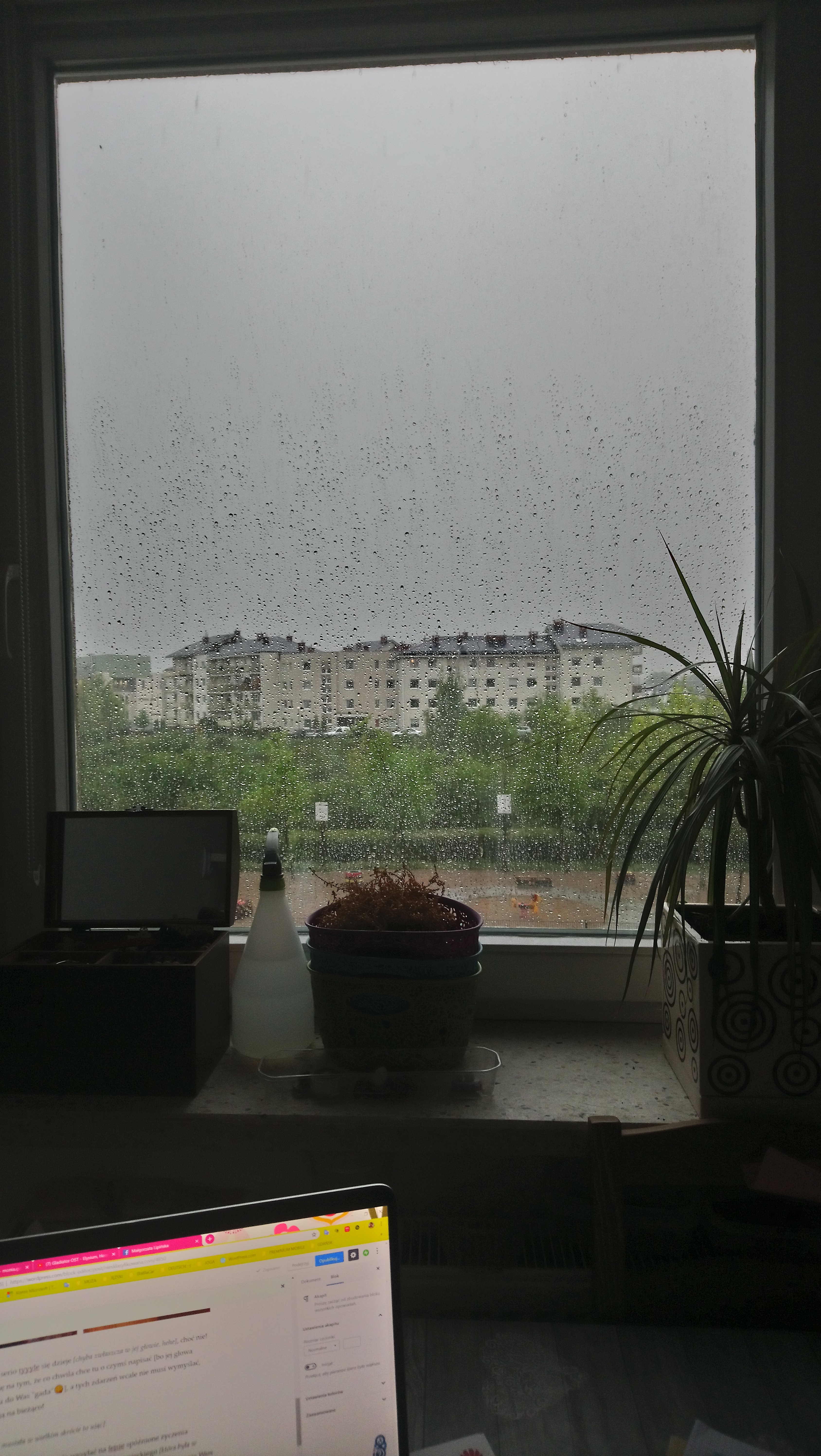 W międzyczasie oczywiście się rozpadało i przeszła nawet burza, nagrała też filmik, ale teraz już tylko widziała, że Adrian, rowerem365, polubił już ten jej filmik tej burzy, jednak ona za Chiny nie wie, jak mogłaby go tu wstawić…