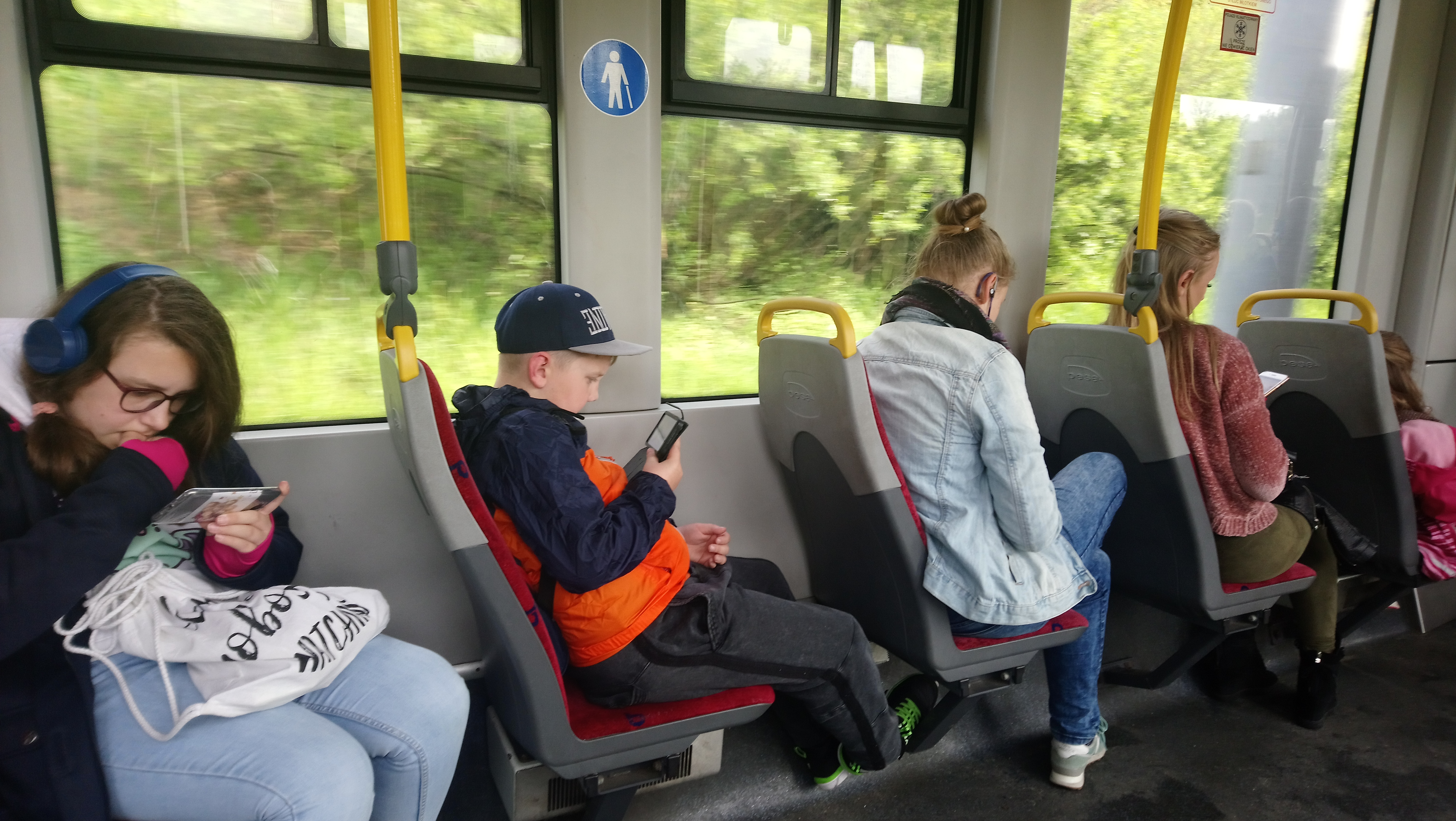 A tak szła sama ze sobą szczęśliwa i choć jadąc tramwajem czuła już naprawdę zmęczenie to jednak się do siebie uśmiechała, wprawdzie choć tam już zdjęła ten płaszcz i rozebrała się całkiem do krótkiego rękawka [+ jeszcze zrobiła fotkę ludkom, bo to było dopiero „fajne”, choć już coraz częstsze niestety zjawisko = człowiek + telefon komórkowy]