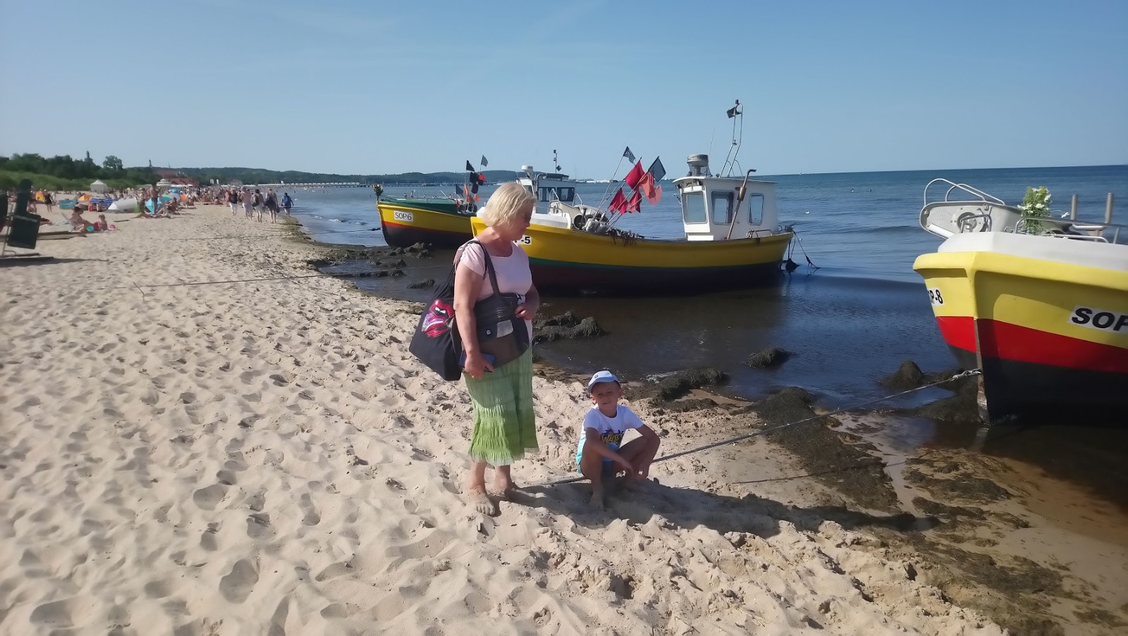 Po skończeniu obiadu udali się ponownie do tramwaju do Jelitkowa [tym razem jednak obczaiła, że 8 jedzie tam znacznie krócej niż 6]. Jak już znaleźli się na tej plaży w Jelitkowie, to [bo wczoraj właśnie tak postanowiły z mamą] wybrali się także na „dłuższy” spacer plażą do samego Sopotu 😋