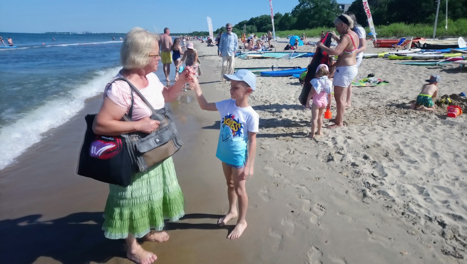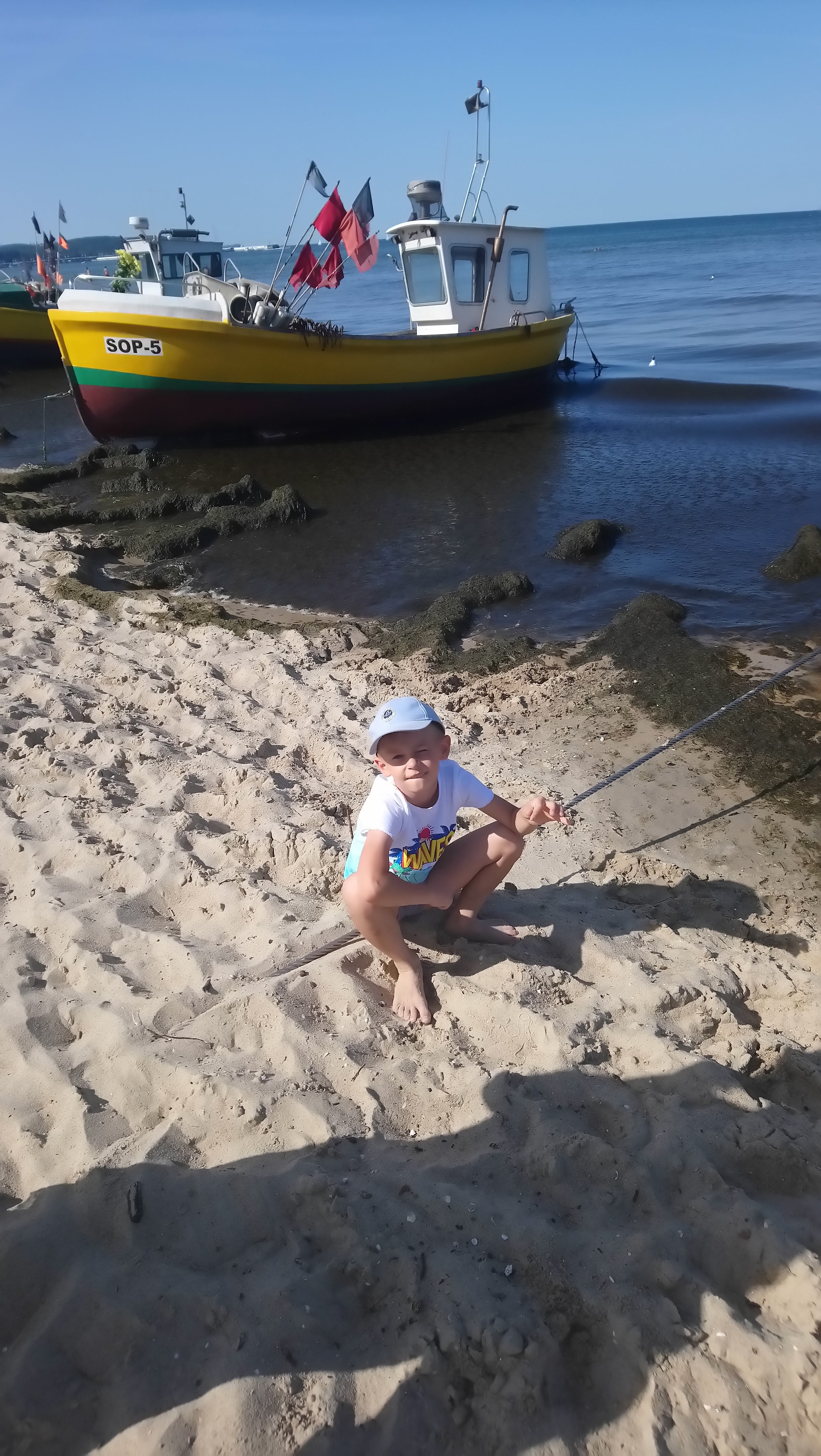 Następnie pojechała wspólnie z rodzinką na plażę do Jelitkowa, pochodzili tam brzegiem plaży i mocząc nogi w wyśmienitej morskiej wodzie i było po prostu super 👌! Świetnie się bawili chodząc po plaży [w przypadku Kacpunia to oczywiście biegając, skacząc, kopiąc w piasku za skarbami, czyli po prostu bawiąc się tam], zamaczając nogi w morzu i zbierając muszelki 🤭[tu znów Kacpi nie byłby sobą, gdyby oczywiście – jak zresztą każde normalne i zdrowe dziecko, nie skakał przez te fale, tym samym mocząc sobie spodnie, ale ona w ogóle się tym nie przejmowała, gdyż najważniejsze było dla niej, że widziała, iż świetnie się bawi i jest szczęśliwy!😊]