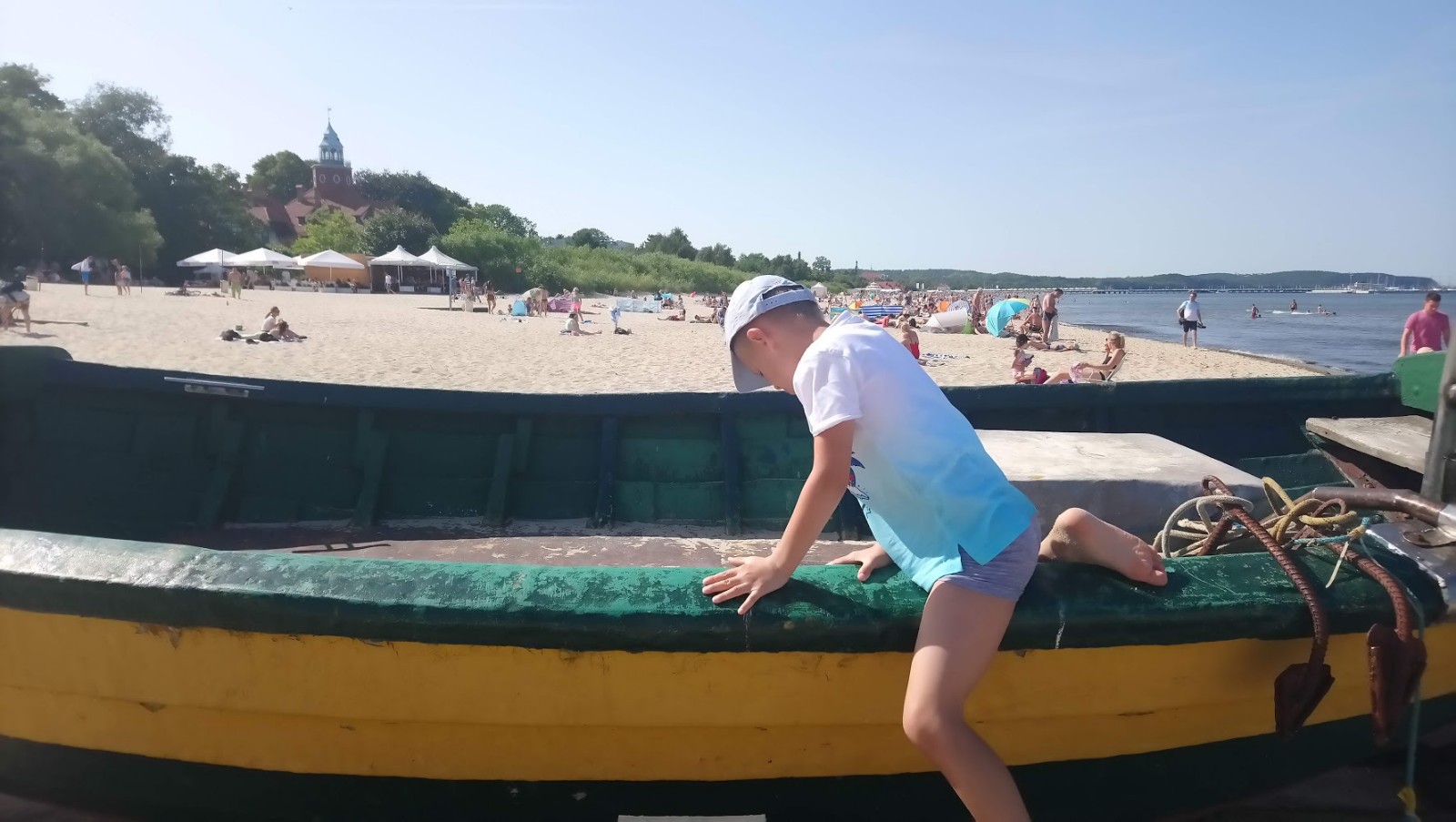 Tu powyżej widać, jak Kacper wchodzi do kutra rybackiego, jej mama [oczywiście nie byłaby sobą, gdyby nie rzekła do szkraba😉], że nie wolno! Ona jednak powiedziała, a niby dlaczego mamo nie można, jest tu jakaś informacja o tym, jakiś napis zabraniający? 😋 I ta sama „śpiewka” wciąż niestety jej pesymistycznej mamy, zakładającej zawsze z góry TYLKO najgorsze…, jednak zauważyła także, że powoli [raczej BARDZO POWOLUTKU 😋] również to się u jej mamy zmienia. Gdyż przecież WSZYSTKO W NASZYM ŻYCIU ULEGA CIĄGŁEJ ZMIANIE I NIC NIE POZOSTAJE NA WIEKI TAKIE SAMO – czyż to nie cudowna wiadomość?