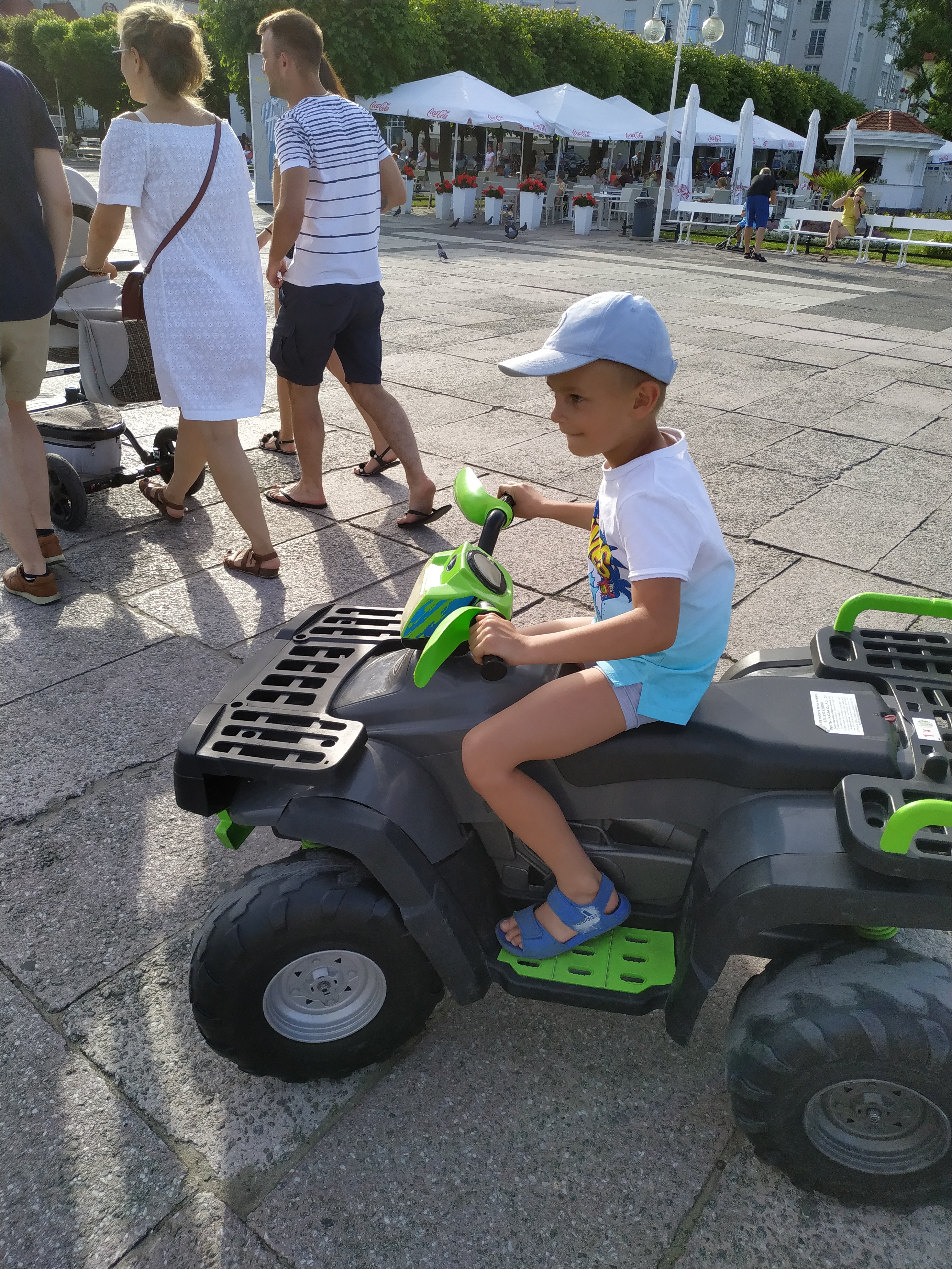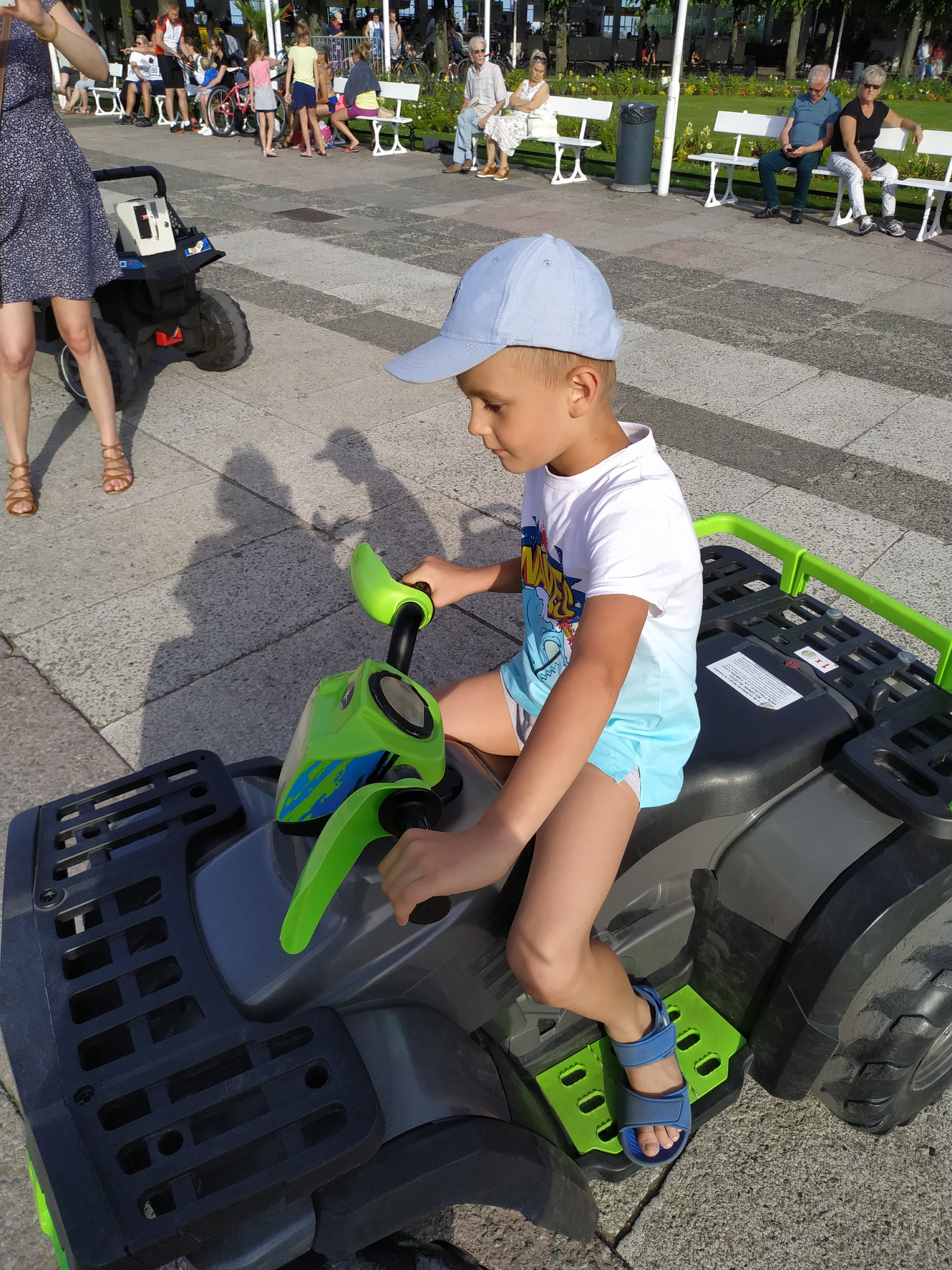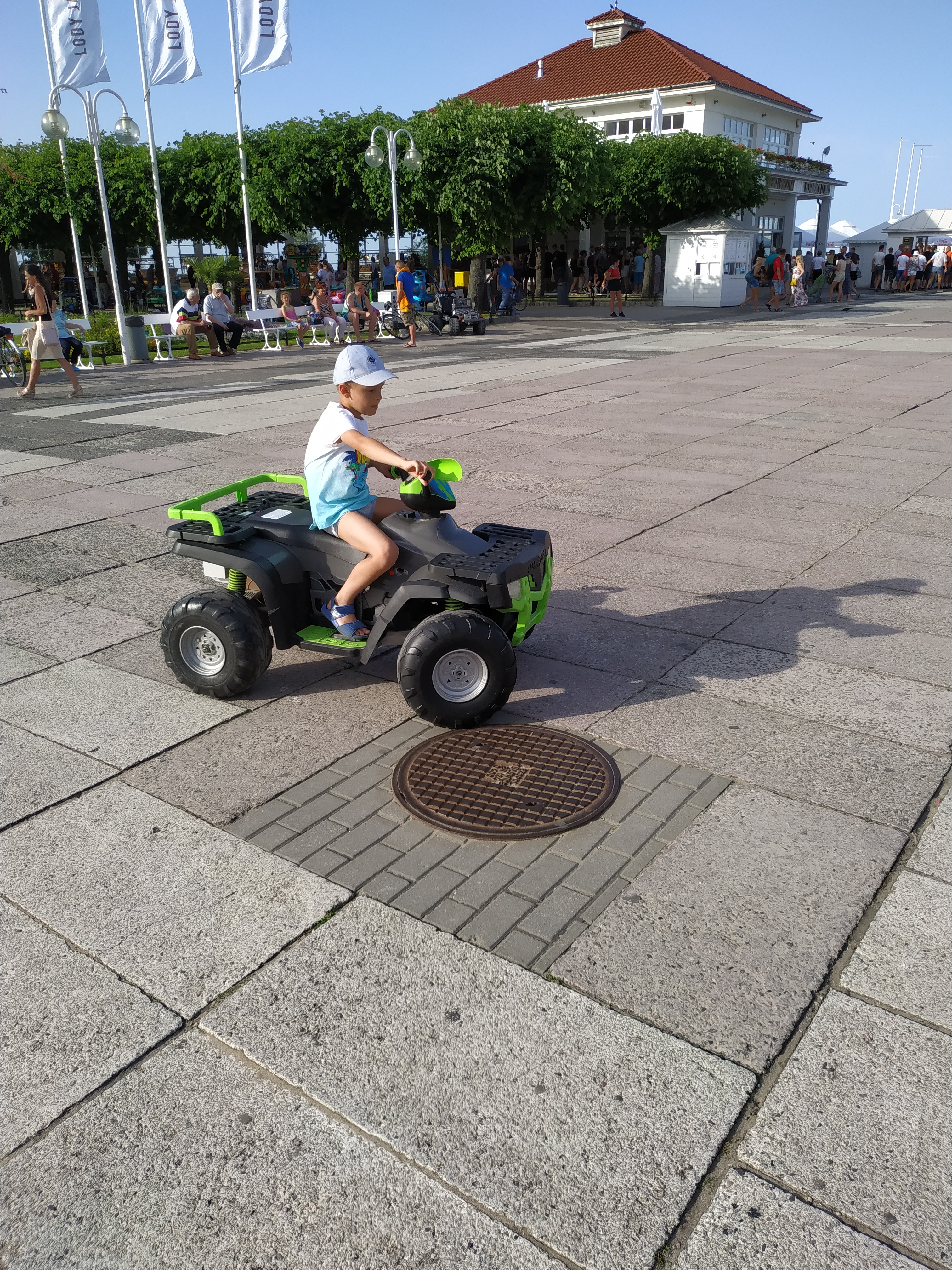 Następnie, jeszcze przed molo, Kacpuś bardzo chciał pojeździć na gokarcie, zatem najpierw wykupiła mu (uwaga! 4 minuty za 5 zeta!), po czym kolejne 4 min. zakupiła Kacperkowi także jej mama [niestety, pomimo, że nagrywała mu filmiki, bo cudownie jeździł ten szkrab! teraz nie może już ich nigdzie odnaleźć…, najbardziej prawdopodobne, że wykasowała je niestety razem zresztą i ze zdjęciem, które zrobił im pewien Pan [a byli na nim w trójkę!] …- no, ale co zrobisz, jak nic nie zrobisz?😋 Trzeba po prostu zaakceptować ten fakt, bo i tak najważniejsze są przecież wspomnienia 😊.