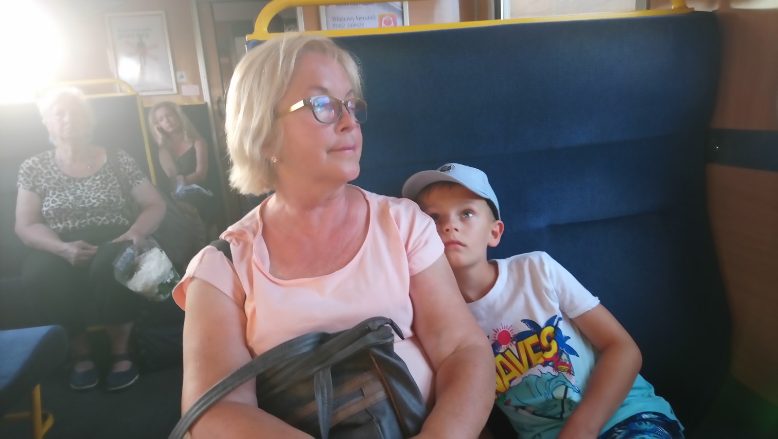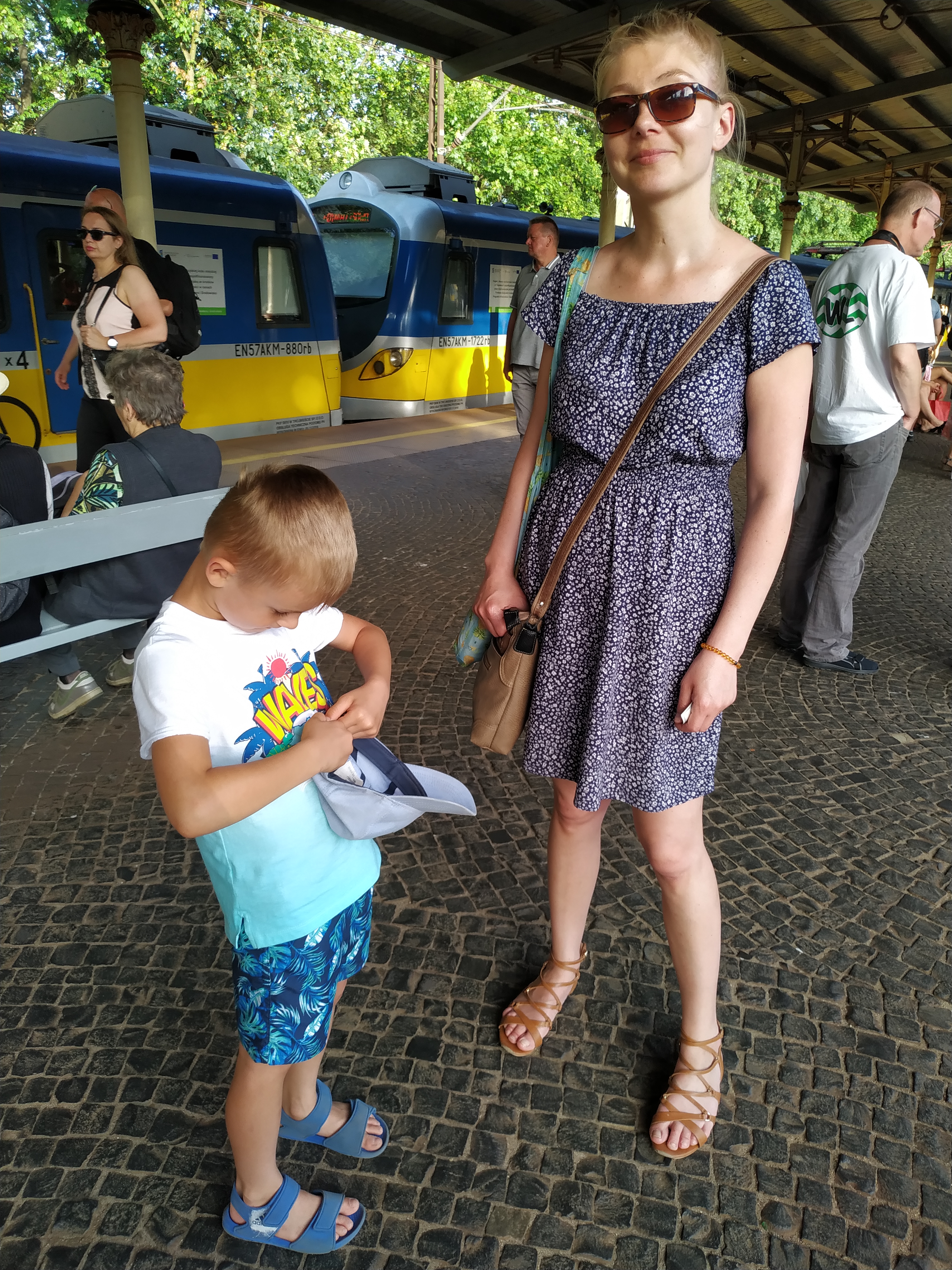 Przyjechali jeszcze do niej do mieszkania, tylko po bagaże, które tu zostawili. Następnie udała się z nimi na dworzec, gdzie bardzo długo czekali na peronie, na którym była masa turystów [ale tak w zasadzie przypuszczali, że będzie, w końcu teraz są wakacje😉]. Jednak cóż się okazało? Chyba z 3, czy 4 pociągi pospieszne i Intercity były opóźnione, stąd znaczna część tych osób czekała właśnie na nie i do nich także później wsiadła. Tym samym właściwie przynosząc ulgę jej mamie, gdyż ta mogła wtedy już spokojnie sobie w pociągu do Elbląga usiąść, a do tej pory były obawy, że będzie musiała stać z Kacperkiem na korytarzu.