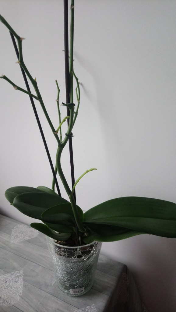 Słuchajcie, tak to dziewczę kombinowało [tak, „kombinuj dziewczyno…”:P] i przestawiała tego swojego kwiatka w różne miejsca, ale stwierdziła jednak, że najlepiej te nowe młode i zielone łodyżki będą widoczne właśnie na takim białym neutralnym tle, by waszej uwagi nie rozpraszały inne rzeczy 😋