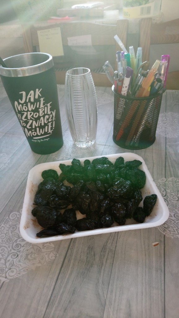 Dzisiaj ze swoją poranną gimnastyką była już GOTOWA O GODZ. 9:00. Tak właśnie, moi drodzy, spojrzała na zegarek i pomyślała sobie, że ma dobry ten czas jednak. Tak bardzo z siebie zadowolona zrobiła swoje müsli i ponownie włączyła sobie Dziennik Bridget Jones, jednak zaraz po zjedzeniu, wyłączyła i tak myślała, co powinna teraz zrobić… Ponieważ wiedziała, że dziś pojedzie odebrać TEN wazon, to chciała już sobie choć odkurzyć. I zabrała się za to! W międzyczasie w kuchni odkryła jeszcze jedną pestkę awokado, obrała ją już i przekroiła na pół. Teraz jest godz. 17:11 ma ją również także potartą.