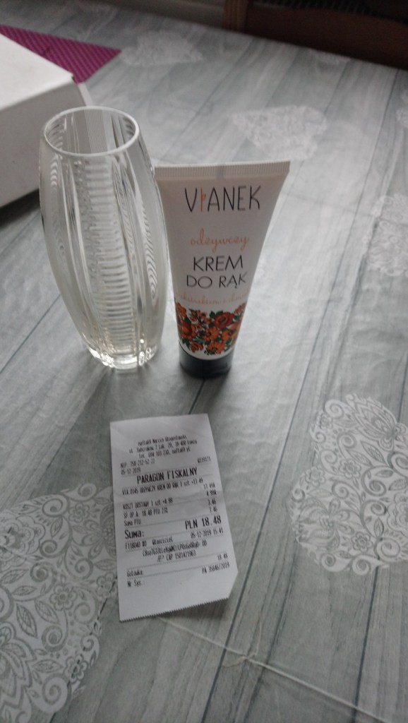 W każdym razie obudziła się wciąż z tą myślą, że dała się tak oszukać, tym wczorajszym odebranym zakupem [zaje…kur…uroczy wazon], na który ona tak czekała i na który już tak bardzo się cieszyła, a okazało się, że to jest jakieś kompletne badziewie, jak widać na zdjęciach powyżej niewiele wyższe od tej tubki kremu 75 ml 😋, a przysłane było jeszcze w tym właśnie kartonie, rozumiecie? Przecież to ewidentne oszustwo!!! 😡😭😲