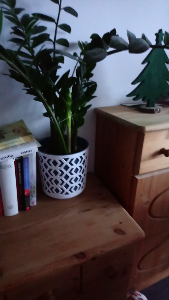 Następnie relaksowała się w kąpieli, później zaś zrobiła sobie maseczkę i wzięła tabletkę na ból głowy, na noc zaś wykonała cotygodniową nocną „kąpiel” swojego pięknego kwiata, któremu wyrasta już NOWY PĘD!!! 😊🍀🧡