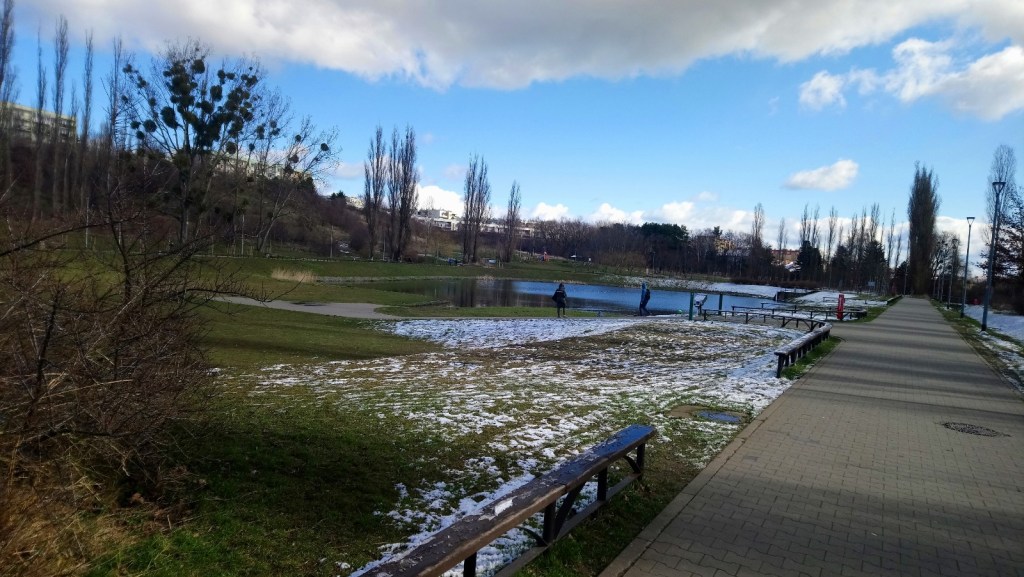 Tam wykonała moi drodzy 5 okrążeń wokół tego stawu. Było tak cudnie! Wędrowała sobie i dzisiaj nie przeszkadzało jej w ogóle, że nikt jej nie towarzyszył. Obserwowała także ludzi, bo teraz jakoś ich więcej na tych spacerach😉, zauważyła ponownie nawet 2,3 osoby, które biegały. Choć dostrzegała czasem również spacerujące tam pary i tak sobie pomyślała, jak ona chciałaby móc także tak kogoś potrzymać za rękę, przytulić, czy choćby z kimś [oczywiście, że nie całkiem „przypadkowym kimś”;-)] tak sobie właśnie spacerować.