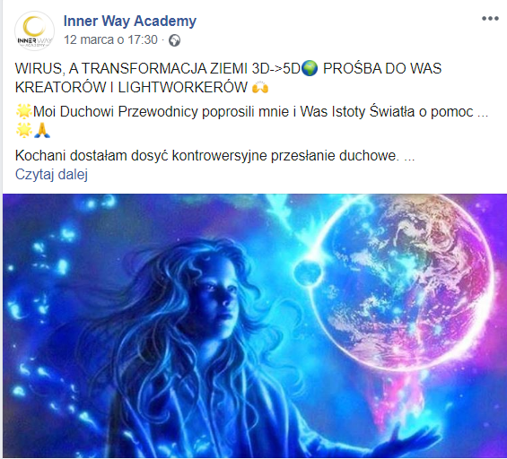 W międzyczasie dostała chyba przez Messengera wiadomość o KORONAWIRUSIE od „jakiejś”, [podkreślam to słowo JAKIEJŚ znajomej, nawet to dziewczę już nie wie dobrze, skąd ma tą kobietę w swoich kontaktach…🤣] i udało jej się udostępnić to i na fejsie i na LI… a najgorsze, że pochwaliła się tym również tam: na Grupie Twoja Nowa Świadomość. A poniżej jej notatka z wpisu, który już wykasowała, udostępni to więc w kolorze zielonym: