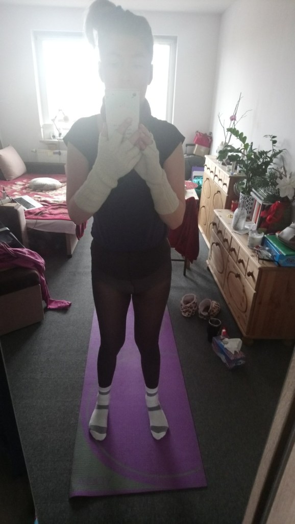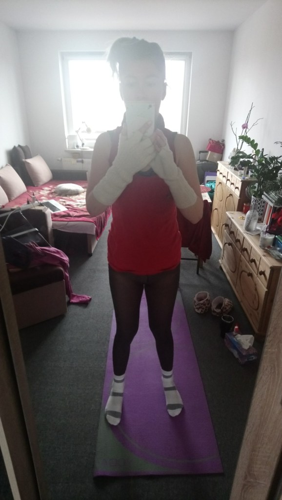 Wykonując dzisiaj 08.IV.2020, ŚRODA swoją gimnastykę [a teraz robi ją już tylko w tych rajtach, na górę na T-shirt wciąż zakłada wprawdzie jeszcze bluzę, ale taką już cieńszą i ma ją odpiętą (bo zamek jest zepsuty, buhaha😜)] w pewnym momencie zrobiło jej się już TAAAAAK gorąco [a ćwiczy sobie, przy uchylonym oknie], że musiała i tak się rozebrać do blielizny 🤣 spokojnie, nie pstryknęła tu już sobie żadnej foty, hehe, choć może byście tego nawet chcieli 😛