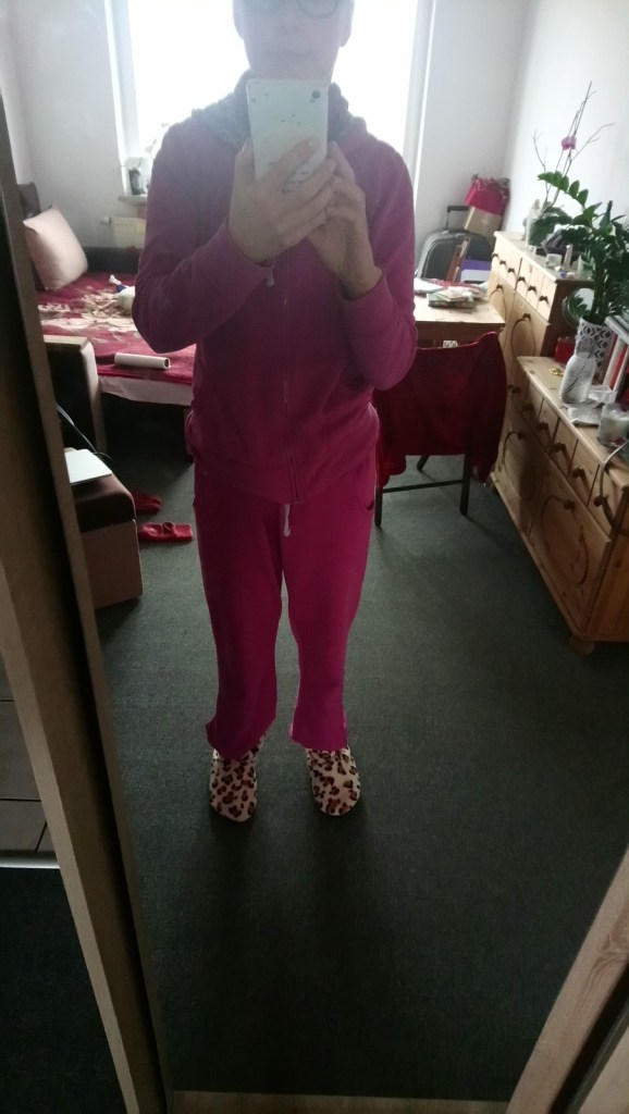 Tak, tak właśnie, powaga! Do śpiwora, w którym teraz również znowu sypia wzięła sobie i termofor [pomyślała, że w ten sposób będzie choć jej cieplej w nogi😋], lecz ponieważ było jej już ogólnie cholernie zimno, a ona wciąż nie odkręca kaloryfera na noc! Poza tym, by było znowu „zabawniej”, ma chyba nieszczelne te okna…, zatem nie myśląc długo wstała jeszcze… uwaga! przed 2 w nocy!!! I założyła te rękawiczki, jak i również tą czapkę na głowę, buhaha 🤣