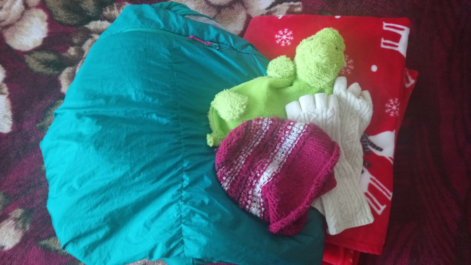 Także dalej o tej jej jakże „ciekawej nocce”: zasnęła chyba dopiero przed 4! buhaha 🤣, tak, bo było jej tak cholernie zimno, że wstała wziąć jeszcze swój termofor i wtedy właśnie już tak sobie w głowie obliczała, do której będzie z całą pewnością spać… I była tak cholernie na siebie zła przez to wszystko, licząc na to, że w konsekwencji z całą pewnością obudzi się jakoś dopiero przed godziną 8… Już nawet doszła do wniosku, że w takim razie wyłączy choć ten pierwszy budzik o 6:33, ale chyba jednak zaskoczona [choć w sumie miała nadzieję, że jej organizm da sobie radę, po raz kolejny zresztą „jakimś cudem” nie zareaguje tak „standardowo”] otwiera oczy, patrzy na zegarek a tam… 6:49! A tu jeszcze fota rzeczy, w które tej nocy, już tak na wszystko zła, musiała się zaopatrzyć [prócz pościeli oczywiście, był to: śpiwór, termofor, czapka, rękawiczki + jeszcze dodatkowy koc, którym się również owinęła 🤣]