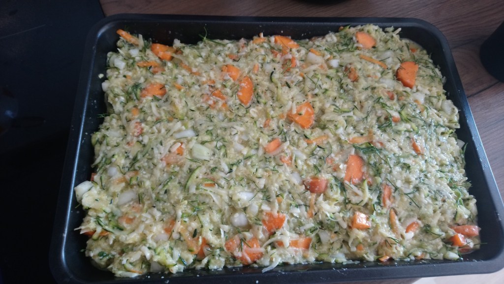 Po tej chwilowej „załamce” wstała jednak, bo wiedziała przecież, że obiecała iż zrobi tą zapiekankę. I moi drodzy, ponownie żałujcie tylko, że nie mogliście ujrzeć, jak ona to wykonywała… robiła ją w kuchni w/g tego przepisu oczywiście: https://aniagotuje.pl/przepis/zapiekanka-z-cukinii, tzn. jak to ona, nie miała choćby oregano, to go nie dodała, a miała również w sobotę właśnie zakupioną marchewkę, zatem nawkrajała jej tam również…. I włączyła sobie jeszcze Gracjana [nie za bardzo rozumiała właściwie, w jakim celu i PO CO w ogóle???…]. Ale ok. jakoś chyba wtedy wcale nie myślała, bo przecież, nie dość, że była w takim właśnie podłym nastroju, to jeszcze zajmowała się swoją „ukochaną” czynnością, czyli gotowaniem😜. Dobrze wiedziała, że powinna sobie raczej ten nastrój najzwyczajniej w świecie jakoś polepszać, prawda?
