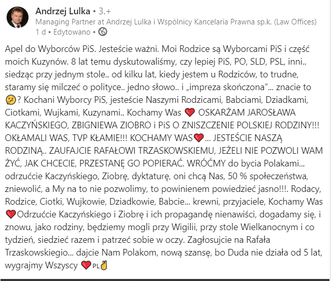 Natomiast leżąc już w łóżku, udostępniła jeszcze kilka rzeczy ponownie na LI, a mianowicie m.in. o wyborach, które wydało jej się szalenie mądre: