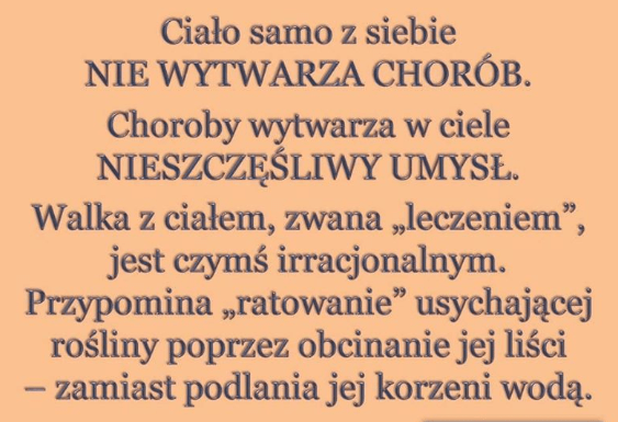 Albo choćby to: „Przez to, że masz dużo rzeczy w twojej psychice, które nie wyszły, które unikałeś…, jak zaczniesz je ujawniać, to nie będą musiały wychodzić „ciałem”, nie będziesz miał te problemy zdrowotne… BO WIELE TYCH CHORÓB, TYCH PROBLEMÓW, KTÓRE MAMY, TYCH ZDROWOTNYCH, TO SĄ/ MAJĄ PODŁOŻE PSYCHOLOGICZNE…” boooszeee, to chyba znowu nie jest do mnie! Bo ja kuwa nie jestem jakimś „matołem”! I dobrze wiem, że właściwie chyba większość takich problemów zdrowotnych ma właśnie jakieś podłoże psychologiczne!
