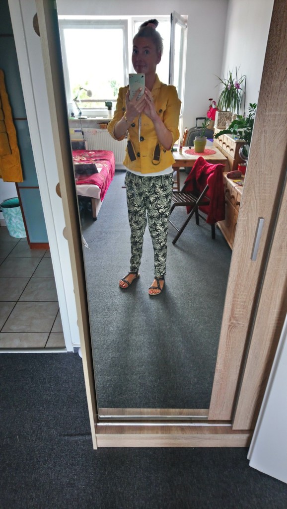 Taaaa, no może niby jakieś miało, bo przecież wybrałam się tam z kijkami do nordic walking, buhaha 🤣, zamiast tej porannej gimnastyki jeszcze… Tylko byłam już zła na tyle rzeczy…, że nawet założyłam ponownie tą żółtą bluzę, którą widać na fotce powyżej, za chwilę jednak ją zdjęłam…, bo pomyślałam sobie, że w niej to będzie mi chyba jednak zbyt ciepło… i kurna wyszłam twierdząc, że nie! Teraz to jednak właśnie w tym cienkim bolerku będzie mi chyba zbyt jednak chłodno…