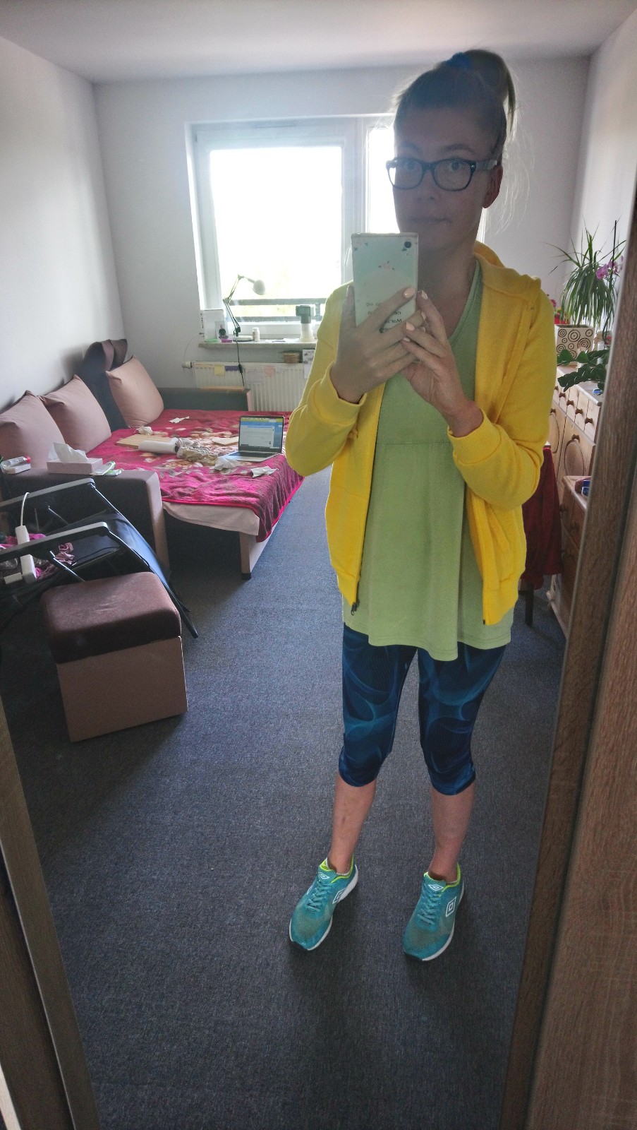 YOGA & 1 SERIE VON ÜNUNGEN 💪 + 40 KNIEBEUGEN 😊 + … (tu miało stać 20 DAMSKICH POMPEK 👍) [i w tym właśnie momencie zdała sobie sprawę, że przecież ona wcale ich nie wykonała!!!] boooszeeee, myśli sobie, jak to się mogło stać w ogóle, skoro zrobiłam wszystko pozostałe, bo przecież i było 2 x po 15 wykroków na każdą nogę + na zakończenie, jak zwykle 100 (liczeń) „bieg w miejscu” 😋
