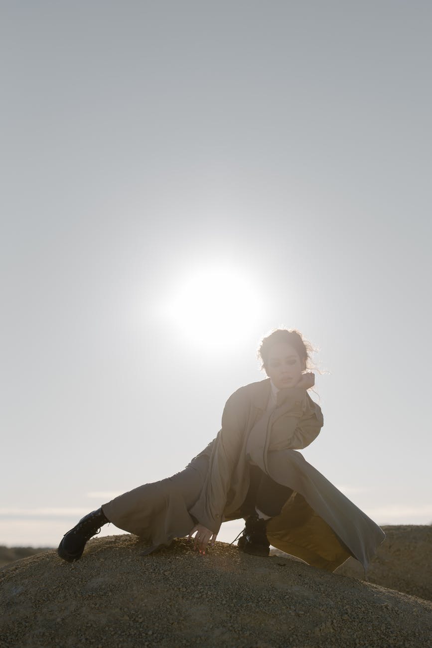 Otóż to jej ćwiczenie wyglądało następująco: była dokładnie w takiej pozycji, jak ta dziewczyna na zdjęciu poniżej, tylko, że Mała Mi unosiła JEDNOCZEŚNIE JEDNĄ RĘKĘ [prawą] & PRZECIWNĄ [czyli lewą] NOGĘ. By właśnie w ten sposób ćwiczyć także swoją równowagę!