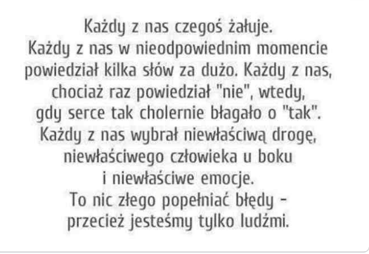 Tak sobie w takich momentach dokładnie myśli, że: i co niby z tego, że popełniam błędy? Przecież jestem tylko człowiekiem i każdy ma do tego prawo, bo NIE MA LUDZI IDEALNYCH! Ale to nie znaczy, że teraz do końca życia będę musiała się za nie „biczować”! 😜