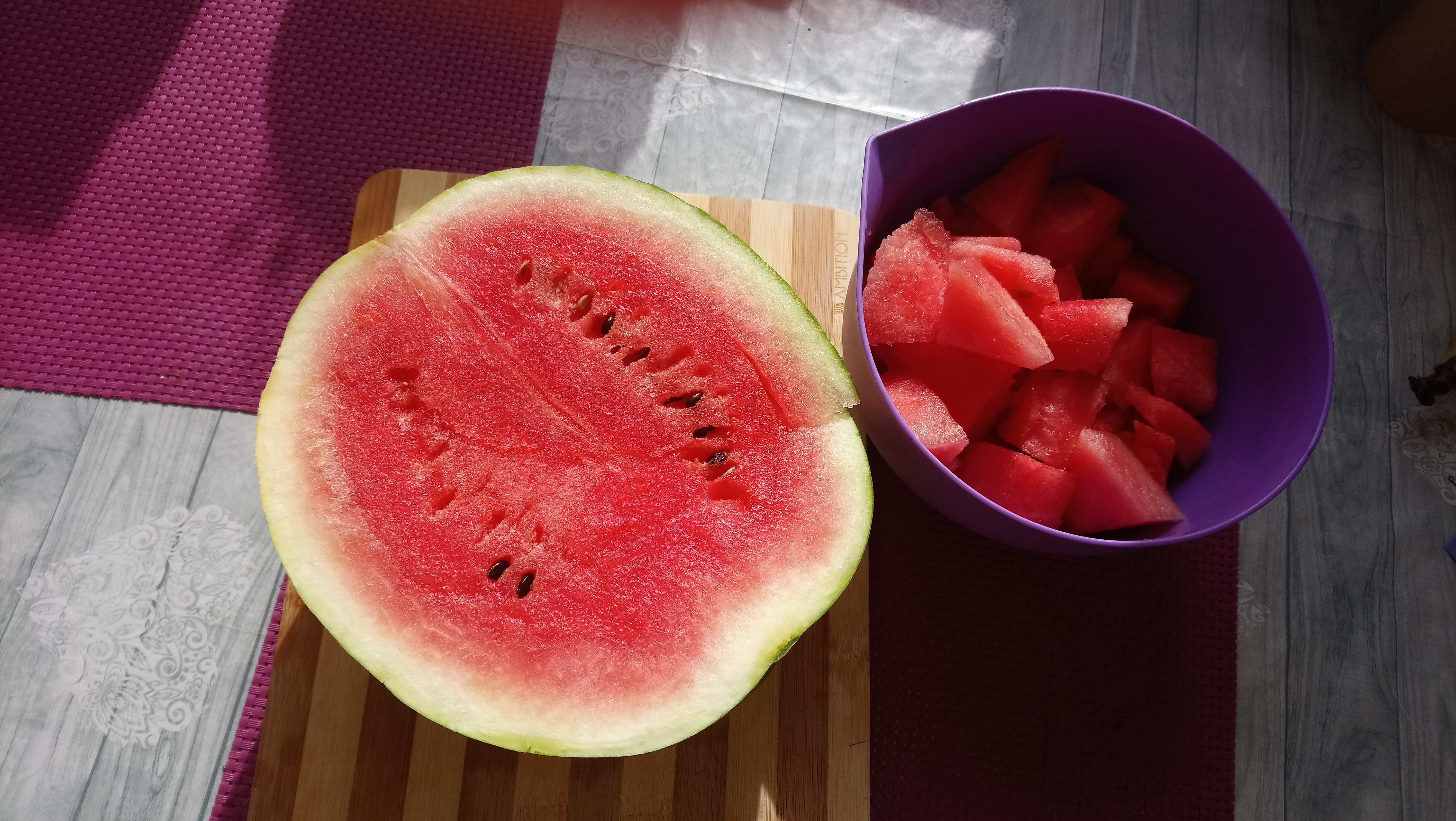 Dlatego, moi drodzy, dzisiaj wzięła i rozkroiła dla nas tylko arbuza, bo niczego innego [na całe szczęście!] 😋 już nie miała, hehe. I tak, taka z siebie ponownie dumna wystawiła oczywiście do kawki nam jeszcze to „coś”, ale tym razem, kochani, miała tego świadomość, że TO JEST owszem nadal SŁODKI, ALE i SOCZYSTY, NIESAMOWICIE PYSZNY TYLKO OWOC!