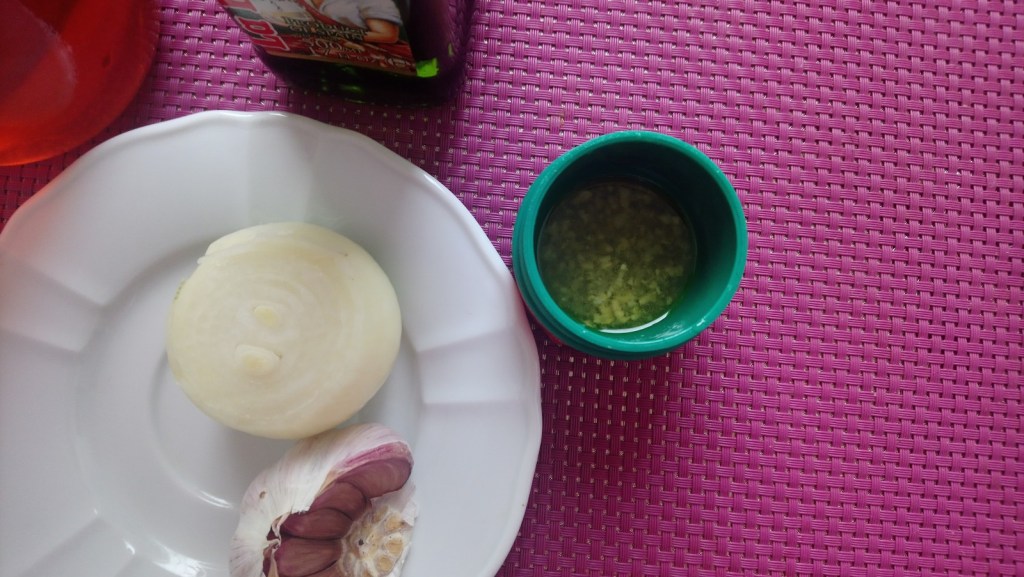 Choć, muszę Wam powiedzieć, iż doszła ta „gwiazda” do wniosku, że chyba jednak niekoniecznie to, cóż wykonała jest ponownie odpowiednie…, bo to wyszło jej jakieś cholernie rzadkie… I właśnie wtedy prócz oliwy z oliwek, którą RÓWNIEŻ DODAŁA, wcisnęła tam nie tylko ten sok z czosnku i cebuli [robiła to właśnie tą praską/wyciskarką do czosnku], lecz także wpuściła do środka również trochę tego miąższu z tych produktów. Później tak sobie jeszcze pomyślała, że skoro tym przyrządem wyciska również ten imbir… także przecisnęła również trochę jeszcze jego tam, hehe 😜.