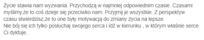 Ale ja już sobie zaczęłam myśleć, że to jest może jakiś znak [bo ja serio wierzę w taką magię], że zaczęłam tu po prostu cytować osoby, nawet nie zapytawszy wcześniej o ich zgodę. I tak sobie myślę: ok., moja droga, to napraw to może najpierw! I tak też właśnie, jeszcze wczoraj wysłałam to do tej Marioli [poznanej w tramwaju do Jelitkowa]: