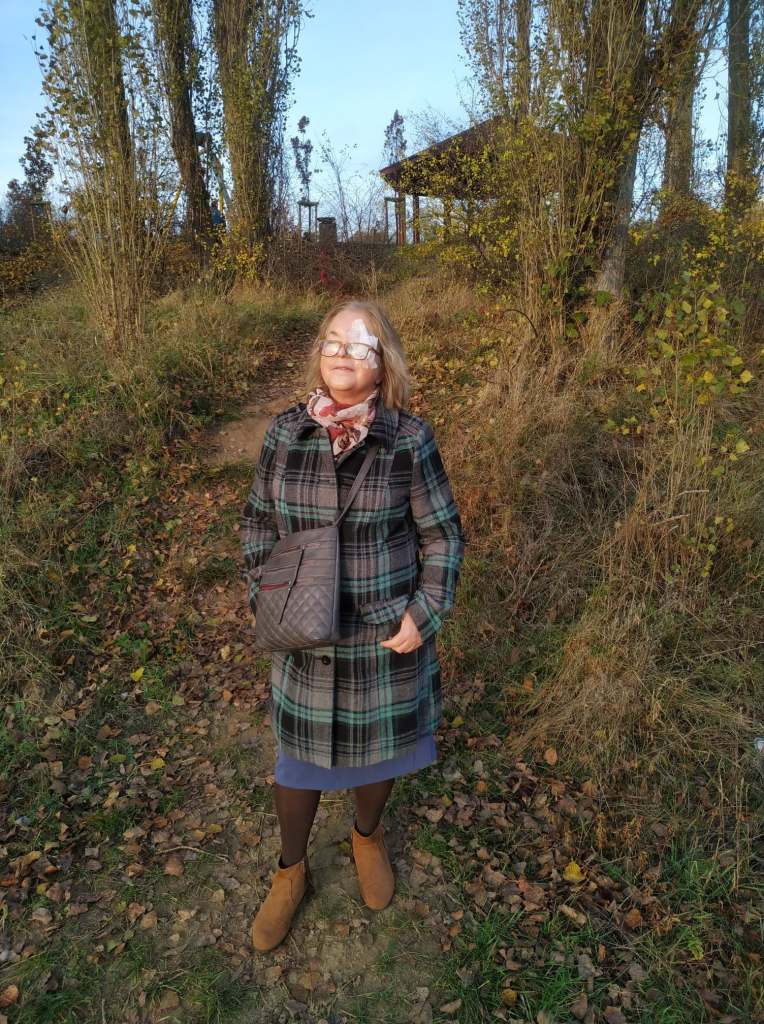 No dobrze, kochana moja, ale myślę, że tutaj przesadzasz także z tym swoim wyglądem! Przecież nie możesz mówić, że jesteś teraz jakaś mega brzydka! To w końcu jest niezależne od Ciebie, jak dobrze widzimy i wcale nie tylko z Twojej winy! Tu poniżej jeszcze kolejne selfie, które sobie przecież wykonałaś 17.XI.20, jak szłaś ponownie do tej apteki! I tu właśnie widać, że przesadzasz jednak z tym okiem!