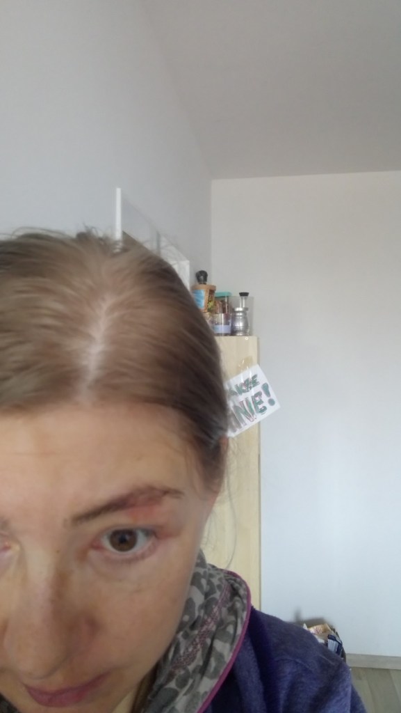 Zaraz się do tego jeszcze odniosę bardziej szczegółowo, by to wszystko Wam [już nie tylko JEMU, bo ten jakoś chyba teraz zamilkł…, hehe 😜] bardziej wyjaśnić. To może jeszcze tylko dodam, zwłaszcza dla TEGO człowieka tą informację, wraz ze zdjęciami oczywiście, że NICZEGO SIĘ NIE WSTYDZĘ, A JUŻ TYM BARDZIEJ TEGO, JAK TERAZ WYGLĄDAM!!! Wykonuję zdjęcia tej swojej brwi niemal każdego dnia, bo uważam, że to jest cenny dla mnie materiał! Nie zamierzam w ogóle się go tutaj pozbywać! W ten sposób bowiem po prostu kontroluję, jak to wygląda i czy następuje jakaś zmiana/ poprawa! Choć oczywistym przecież dla mnie jest, że wcale fajnie na tych fotkach teraz nie wyglądam… 🤦♀️