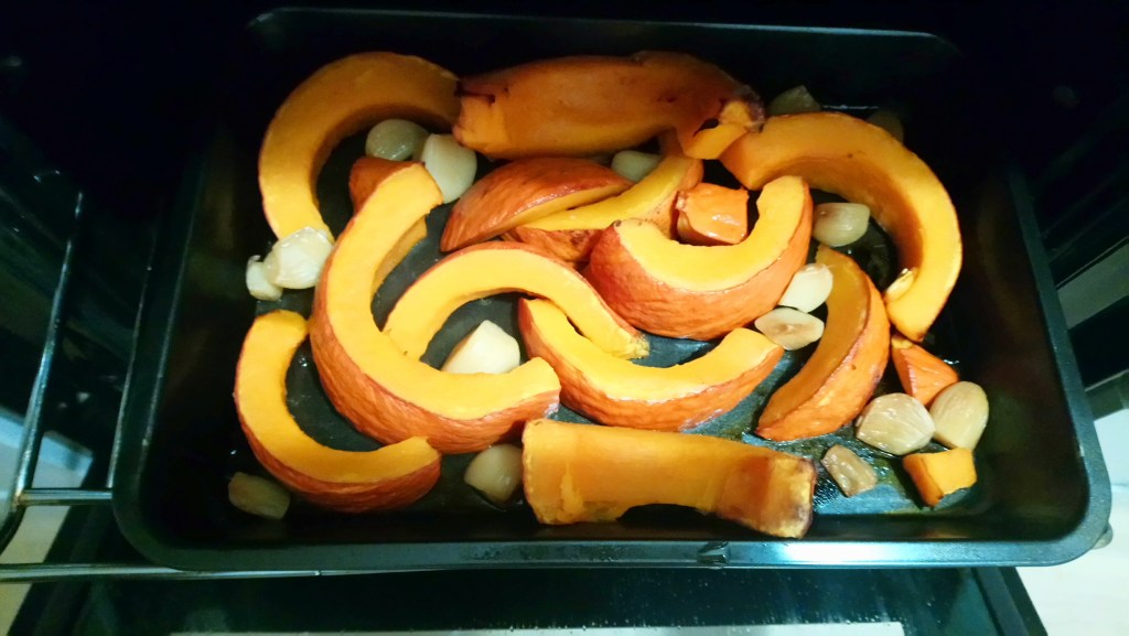A ponieważ miała także upieczoną tą dynię Hokkaido z czosnkiem właśnie, zatem zaraz, prócz tych kilku pierogów, wyłożyła ją także: