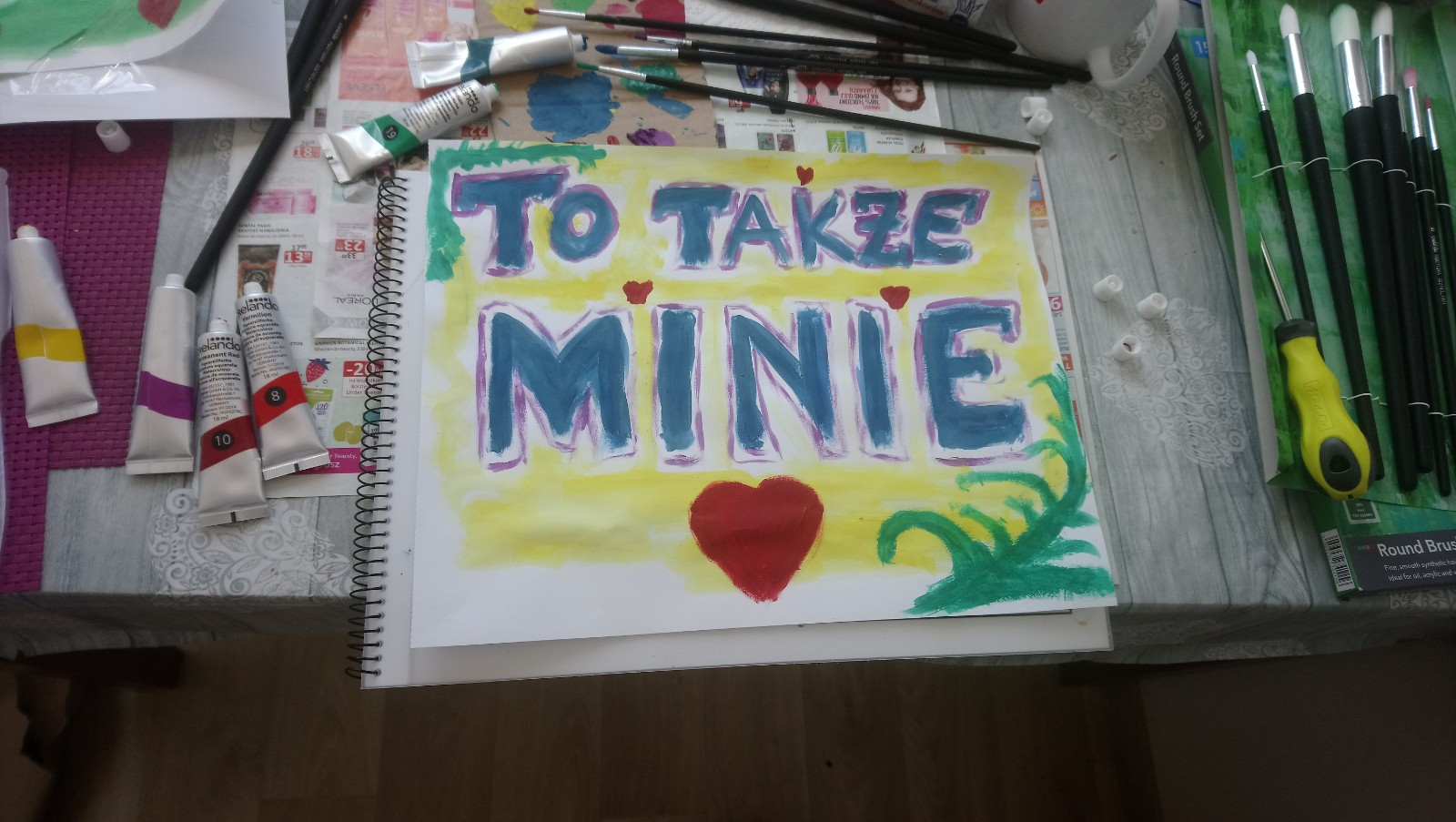 Lecz powtarzam sobie, że NIC NIE TRWA WIECZNIE! Oraz, że TO TAKŻE MINIE => w końcu nie od parady, malowałam dla siebie ten napis: