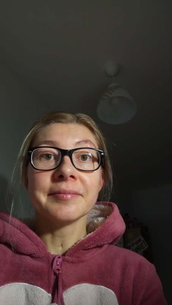 I nawet się jakoś długo nad tym nie zastanawiałam, co mam zrobić… Po prostu wsiadłam do niego, hehe, bo pomyślałam sobie znowu, że przecież lepiej, jak już będę czekała tam w tej miejscowości, skąd mieli mnie zabrać. A poniżej jeszcze moje kolejne selfie, jakie sobie zrobiłam przed wyjazdem do nich w ogóle. Tym razem już ubrałam się naprawdę grubo [bo ostatnio tam u nich właśnie zmarzłam!] i nie zakładałam jednak nawet okularów, tylko soczewki i tak samo, jak ostatnio, zrobiłam sobie jednak lekki makijaż. 😜