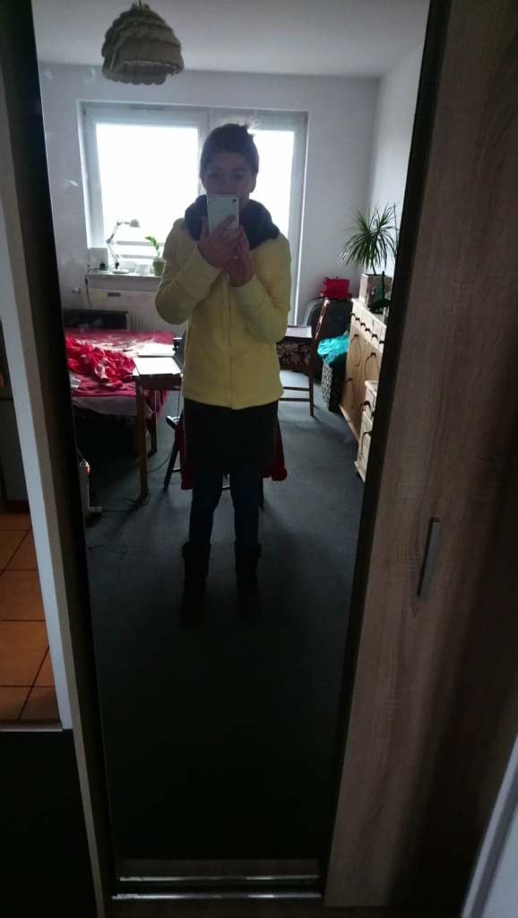 Ale wiesz, teraz już się naprawdę grubo ubrałam, bo założyłam na to jeszcze ten żółty polar, a pod spodnie wciągnęłam nawet cienkie rajtuzy, hehe, 🤪 A dokładnie tak, jak na tej fotce poniżej, wyglądałam jadąc już tym autobusem i słuchając/ oglądając wówczas dalej to właśnie nagrania Gracjana: Czułam się wówczas bardzo z siebie zadowolona i poniekąd także dumna!