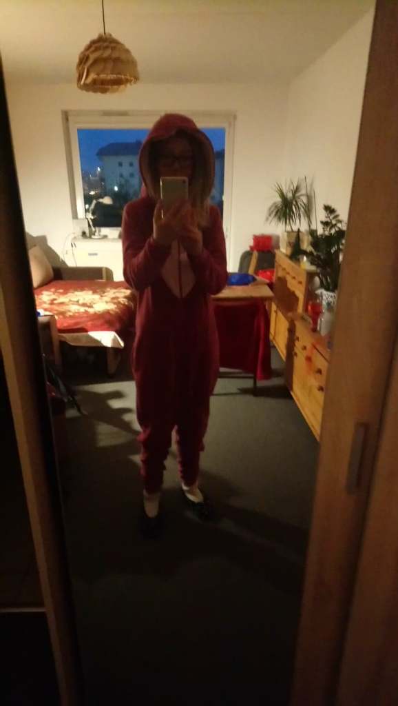 To lecimy z tymi fotkami: Tak właśnie wyglądała nasza „gwiazda” po tym, jak wstała z łóżka [po medytacji naturalnie 7 czakr, którą wykonuje już codziennie, tfuuu…, wróć 2x dziennie, bo przecież i rano i wieczorem!]. Tu widać tą jej uroczą całą piżamkę, hehe,😜 , więc nawet z tymi grubymi skarpetami, w jakich teraz sypia.