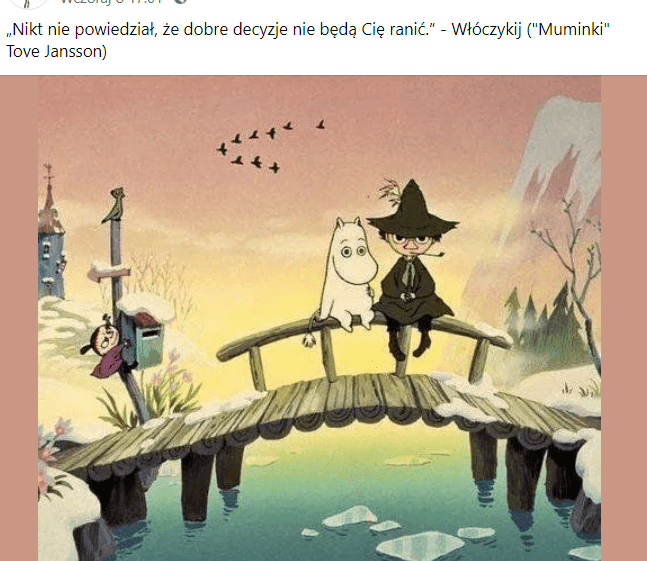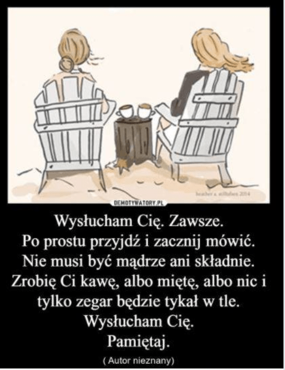 Powiem szczerze, że ja tak naprawdę nigdy nie miałam chyba żadnych naprawdę dobrych i prawidłowych relacji/ związków z tą moją mamą i nie będę pisała, że mi na tym nie zależy, bo jednak wiem, że abym sama mogła budować dalej prawidłowo i poprawnie relacje w mojej własnej rodzinie powinnam chyba zająć się najpierw właśnie tą relacją jeszcze z moją własną rodzicielką… Dokładnie tutaj myślę o tej historyjce z tego fejsa. I o tym, że po raz kolejny dostrzegam, iż NIC NIE DZIEJE SIĘ PRZYPADKOWO! Miałam właśnie na nią natrafić!
