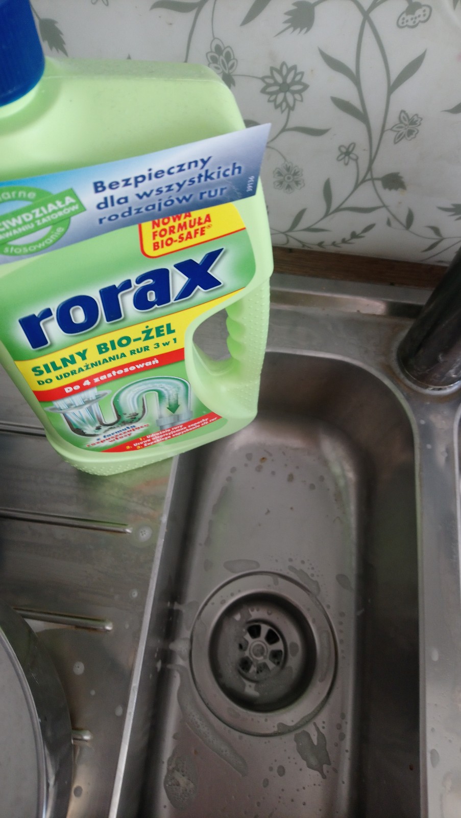 Hm… no jakby to powiedzieć… Wciąż coś tam jest i nie do końca jeszcze ta woda tam schodzi/ odpływa, ale jeszcze właśnie przed wyjściem, zalałam go innym środkiem, teraz takim BIO – ŻELEM, także zobaczymy jak pójdzie z tym [a tak naprawdę już widziałam po zalaniu tego, że to wciąż stoi… (pierwsza fotka= tam wszystko dokładnie widać, jak to OBECNIE wygląda…) najpierw zielony, czyli po prostu ten żel, później dolałam jeszcze (tak jak w instrukcji) 2 szklanki gorącej wody i… nadal stało]. Ale mamo, kończę już, bo właśnie wchodzę do sklepu… 😉