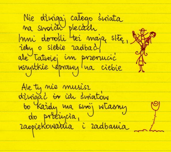 No dobrze, kochana moja, to teraz jeszcze nim położysz się do spania, muszę powiedzieć również o tym, jaką Ty jesteś niesamowitą osobą! Wiem dobrze, jaką ciężką pracę tu jednak wykonujesz codziennie, ale co więcej Ty jesteś przecież zazwyczaj ostatnią osobą, która w ogóle płacze, czy rezygnuje… Ciągle się przecież podnosisz na nowo i wciąż próbujesz choćby podążać za tymi słowami: