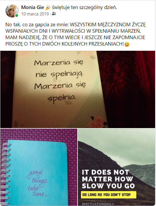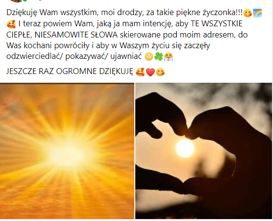 - opublikowanie podziękowań za życzenia urodzinowe dla ludków na fejsie właśnie