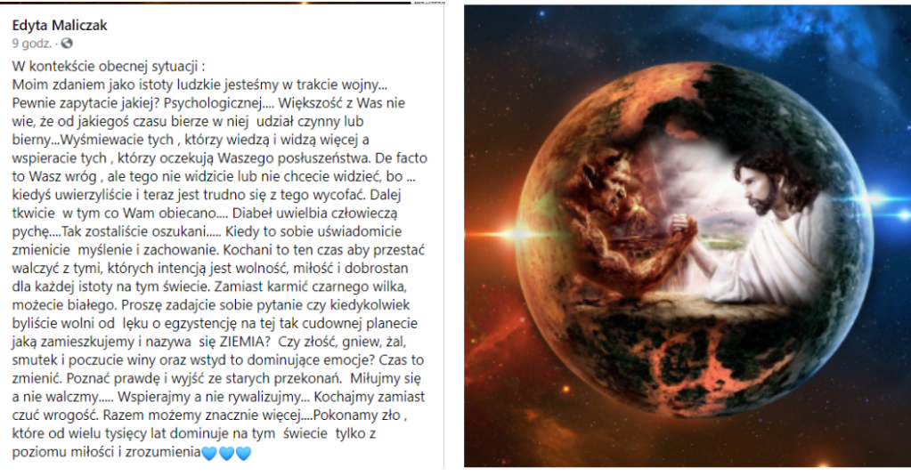 Widziałam kochana moja, wszystko dokładnie, jak bardzo to właśnie dziś na sobie odczułaś! Nawet siadłaś jeszcze w tym swoim kombinezonie do tej medytacji i tu znowu po prostu sobie tak siedziałaś i nawet myślałaś…, a może inaczej: pozwalałaś najzwyczajniej myślom by przepływały i same się jednak w niej układały/ porządkowały… I dokładnie w tym momencie przyszło Ci do głowy to, cóż wczoraj jeszcze dostrzegłaś na fejsie właśnie: