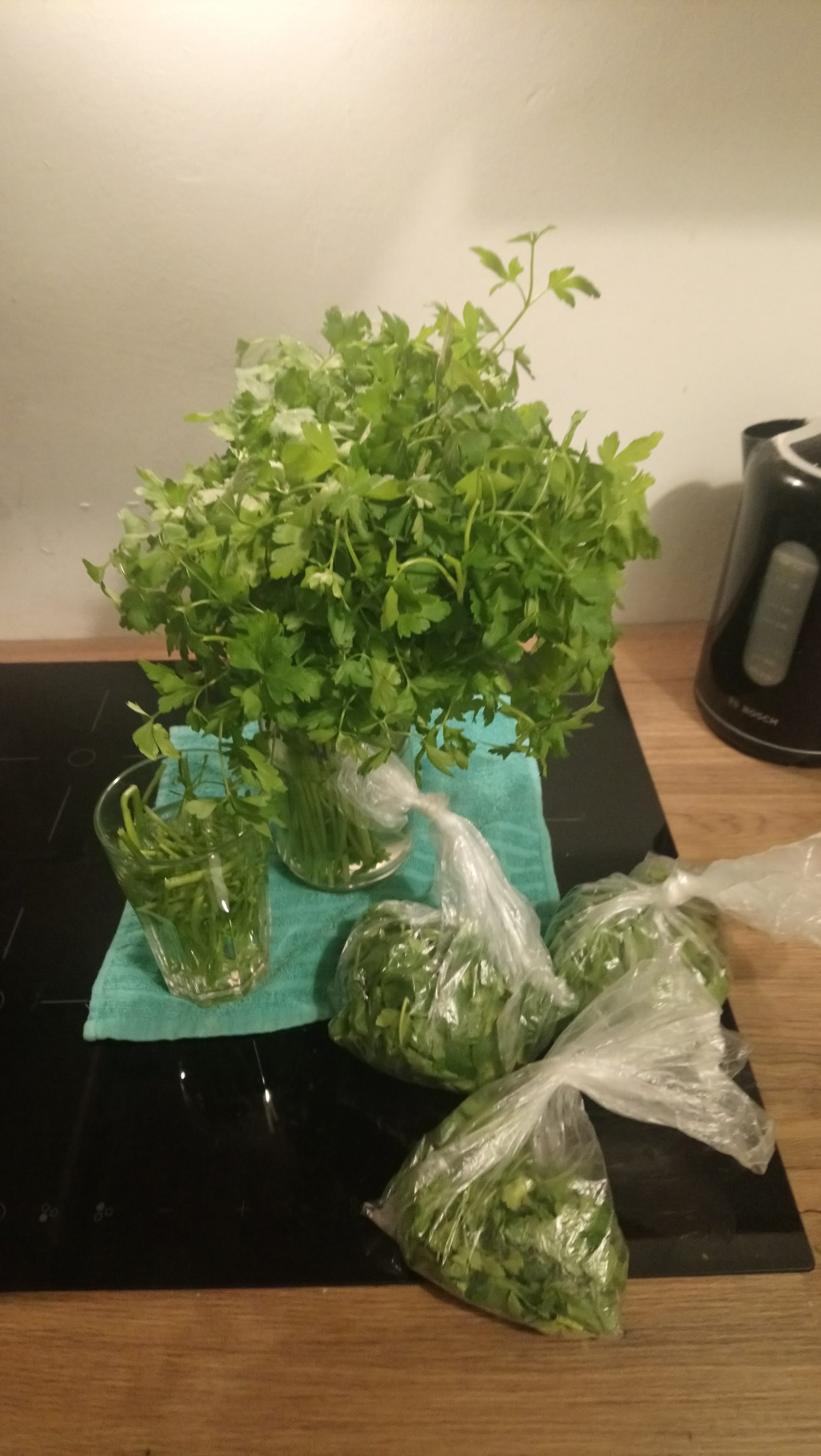 W tym warzywniaku ponownie zakupiłam taką mega wręcz wielką nać tej pietruchy, jak jeszcze poprzednio udało mi się również taką kupić, to później w pierwszej kolejności pomyślałam sobie, że może to jest ich jednak kilka tam wsadzonych… bo przecież ta wielkość jej była wręcz ekstremalnie duża, hehe 😲.