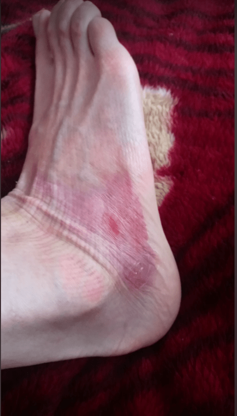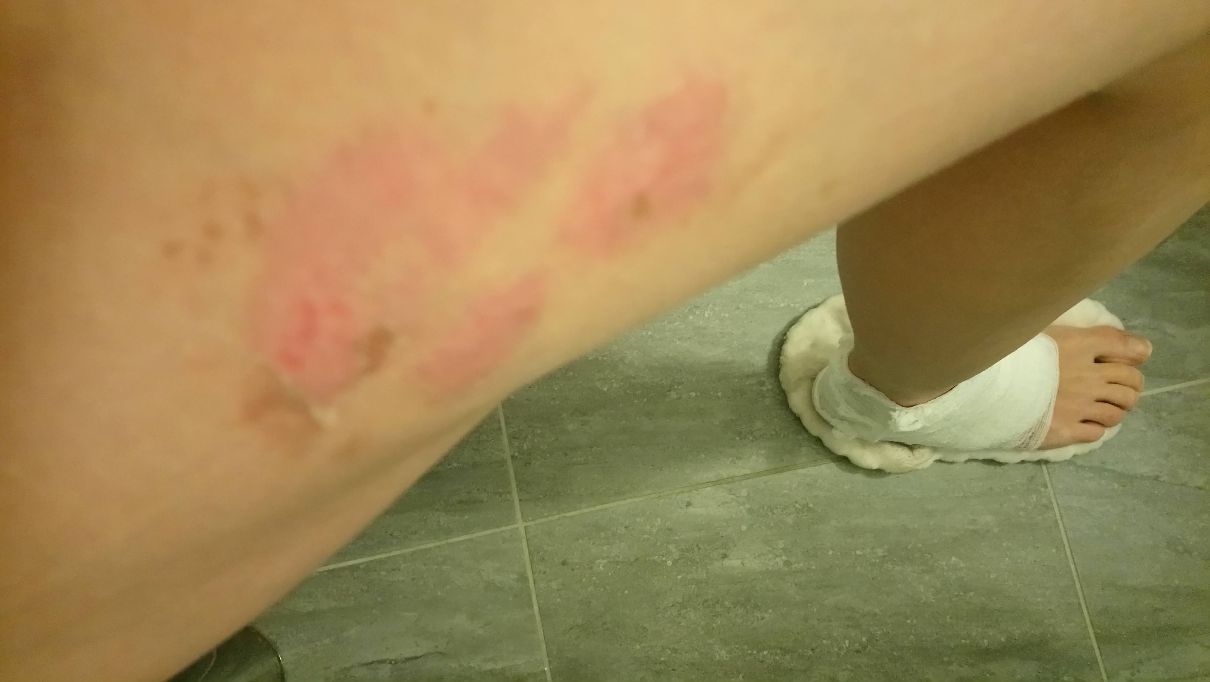 Powyżej zaś kochana, kolejna [wcześniejsza!] dokumentacja Twojej stopy i uda. I spójrz na to jeszcze raz, czyli dobrze wiedziałaś, iż czynisz prawidłowo wykonując tą dokumentację! Przecież teraz właśnie patrząc na to wszystko, niesamowicie dobrze widać, jak ogromny już progres się poczynił! I tak, również na Twoim udzie! Pamiętam dobrze, jakie te ślady na początku były czerwone!