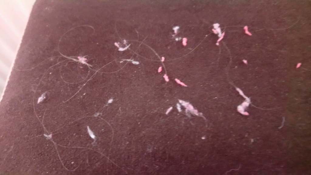 Także tak…, jak widać doskonale On wiedział, komu może to robić…, że ja to przecież wytrzymam…, w końcu niemal od dziecka tak mnie doświadczał i sprawdzał, a ja dawałam sobie już wtedy ze wszystkim pięknie radę! choć uwierz mi proszę, że czasami już miałam po prostu tego wszystkiego po dziurki w nosie… Ale to i tak jeszcze nie wszystko…, bo… poniżej widać jeszcze te beznadziejne farfocle [po lewej] i włosy [po prawej], z którymi ja niemal codziennie walczę… Na początku mnie to po prostu wręcz rozwalało…, bo ja bardzo lubię mieć przecież porządek… a tu takie syfy mi się właściwie wszystkiego zaczęły czepiać i … później dopiero rozkminiłam, skąd to może w ogóle pochodzić…